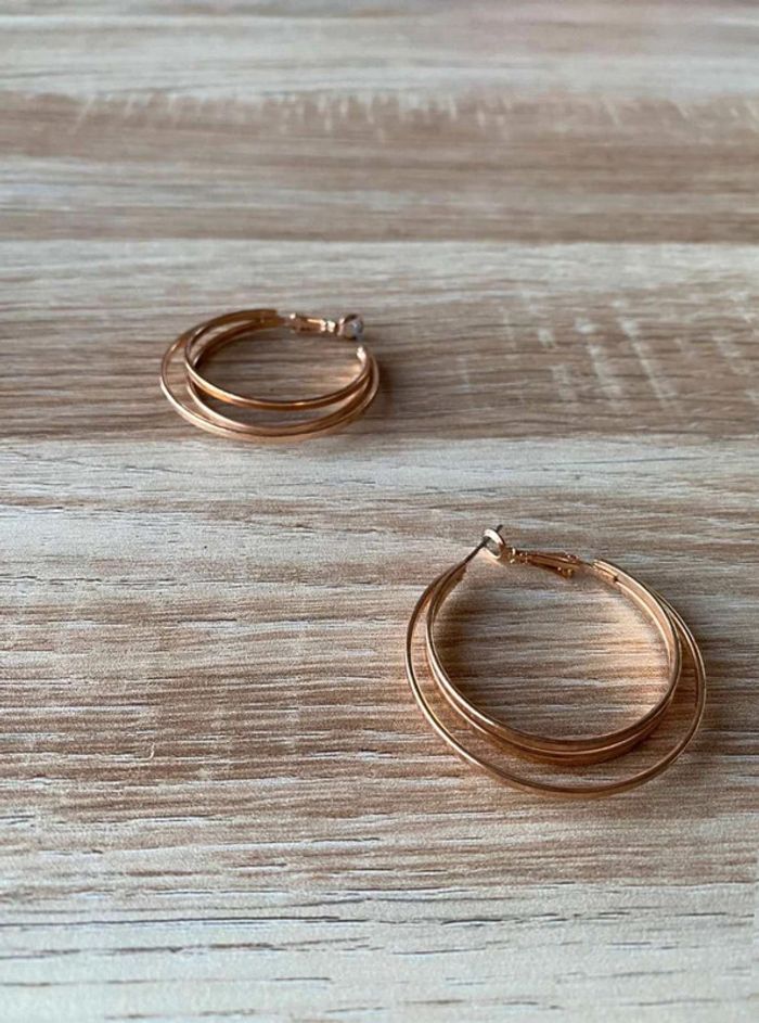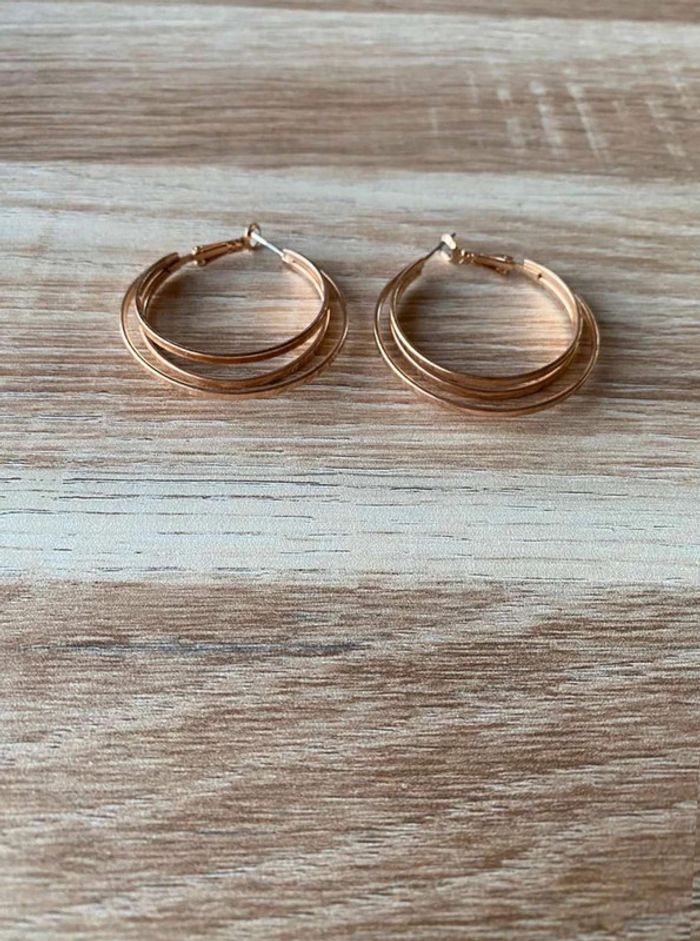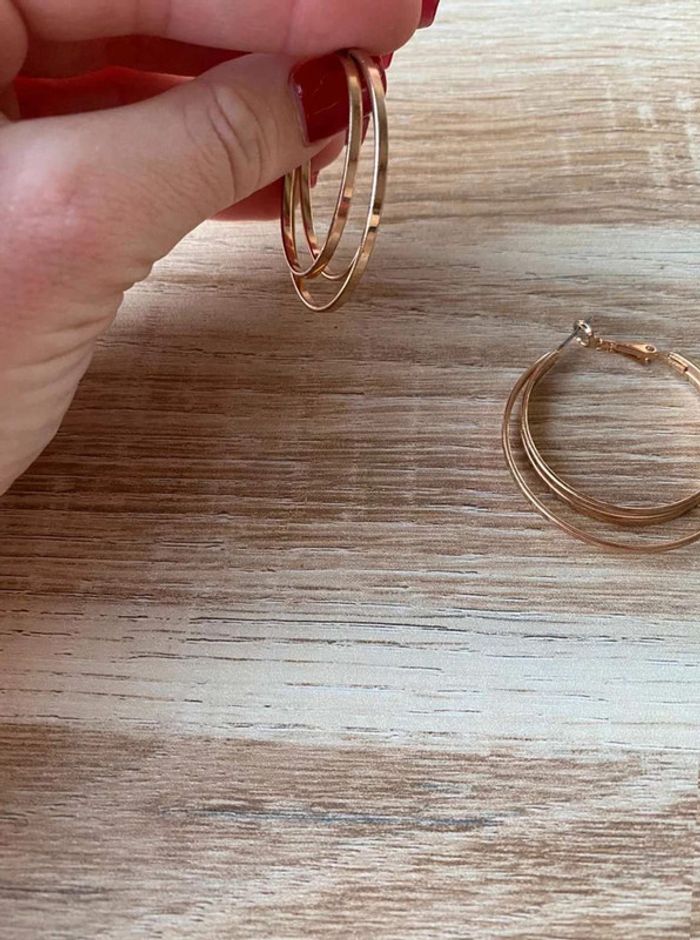 Boucle d’oreilles doré (acier or) Créole, Trois rangs Bon état Acheté dans un magasin de bijoux