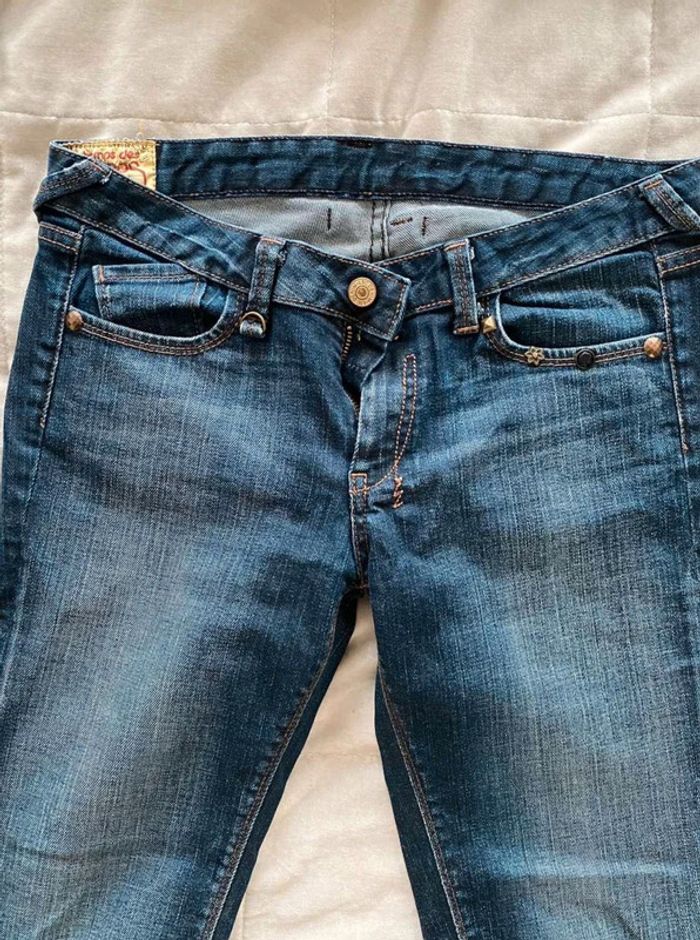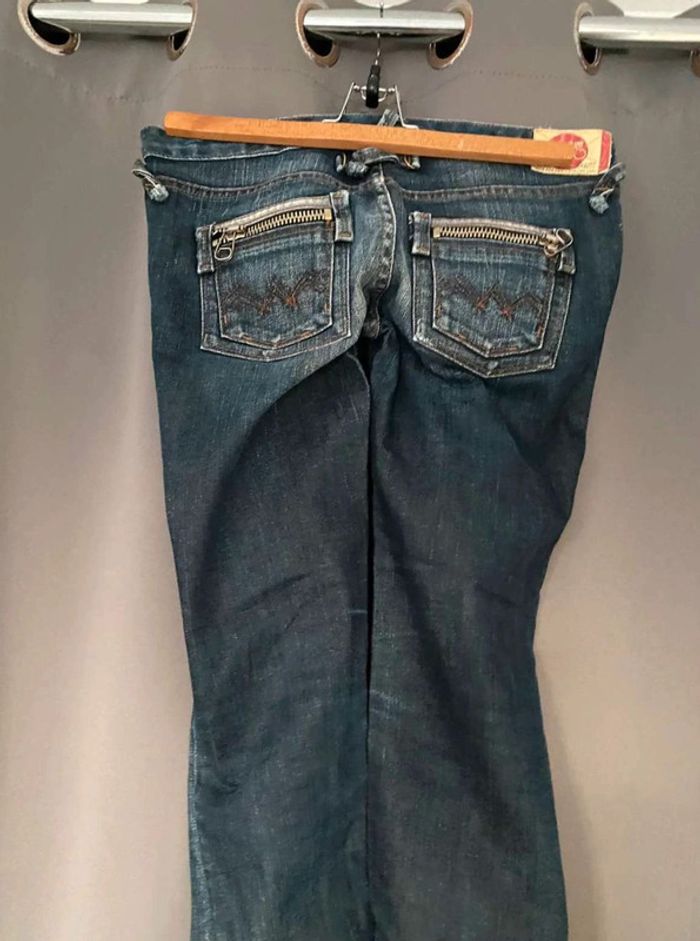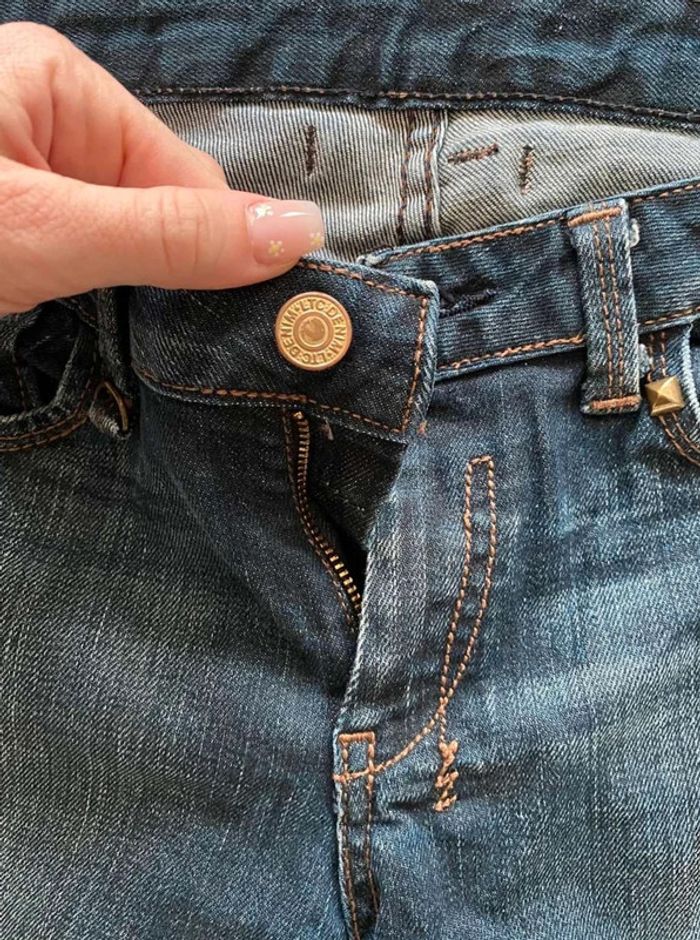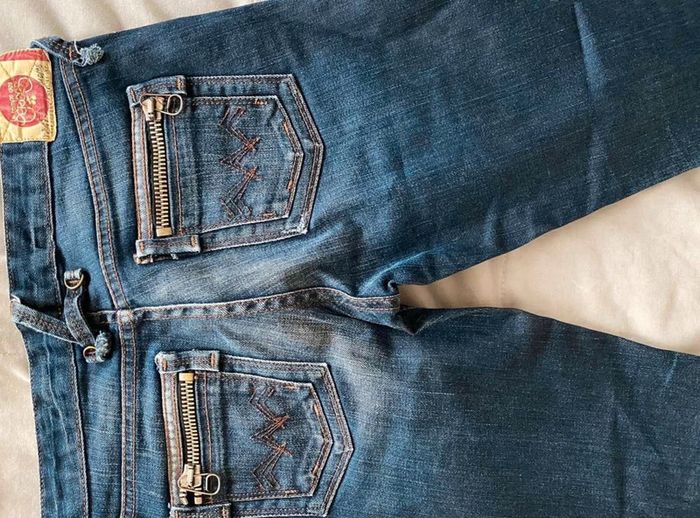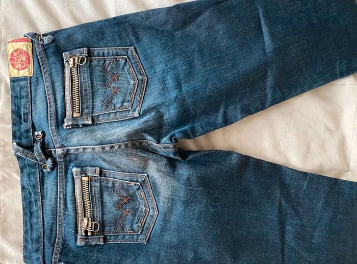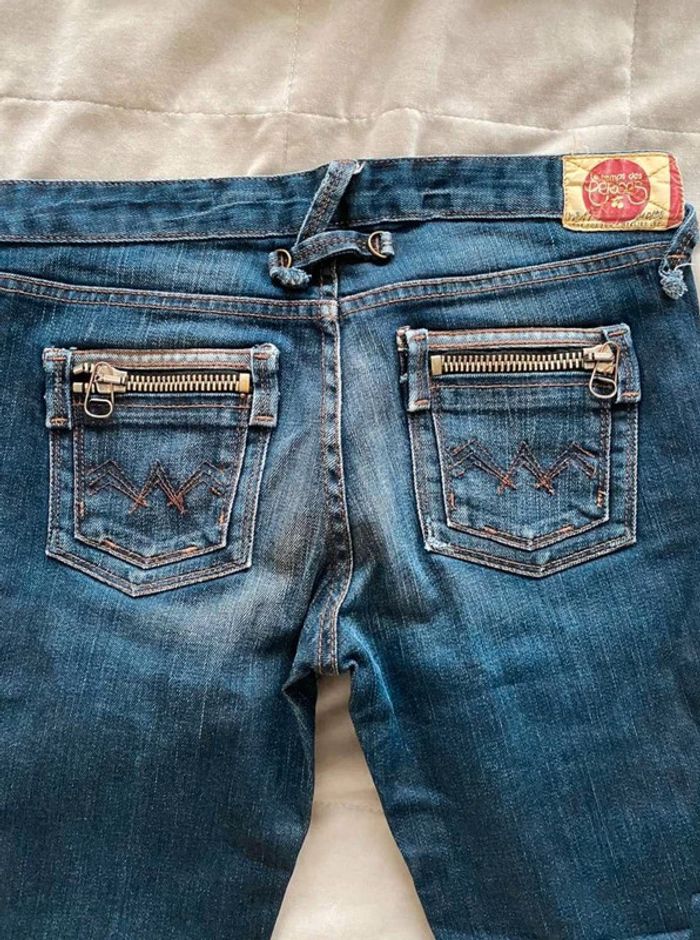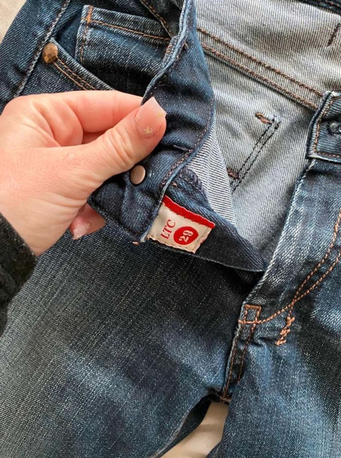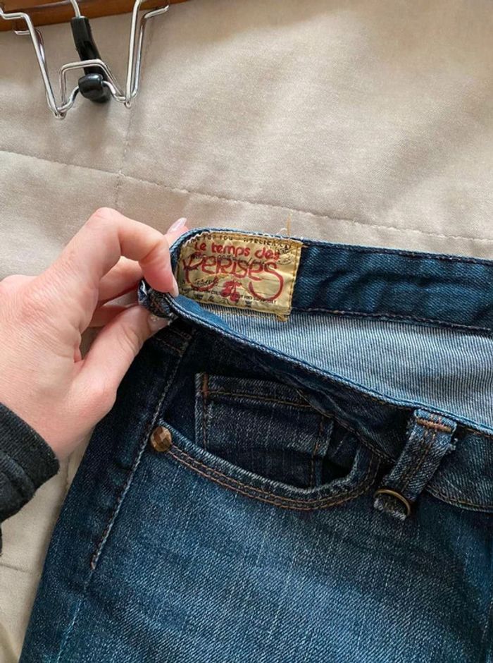 Jean Jean vintage / effet ancien Plutôt fonce Avec poches devant et poches derrière Détails sur les poches devant Grosse fermeture éclaire sur les poches derrière Plutôt large en bas Bon état Le temps des cerises Taille 29 18€