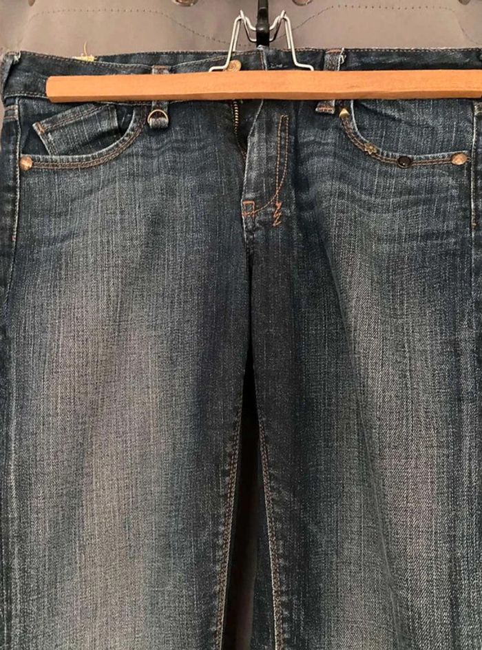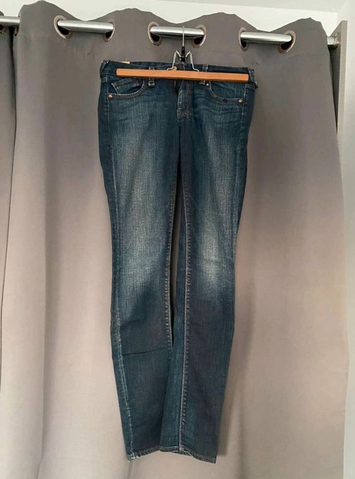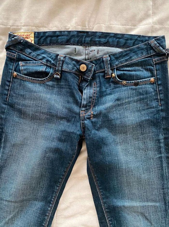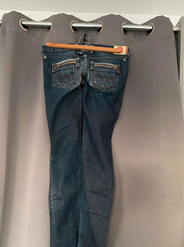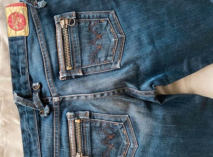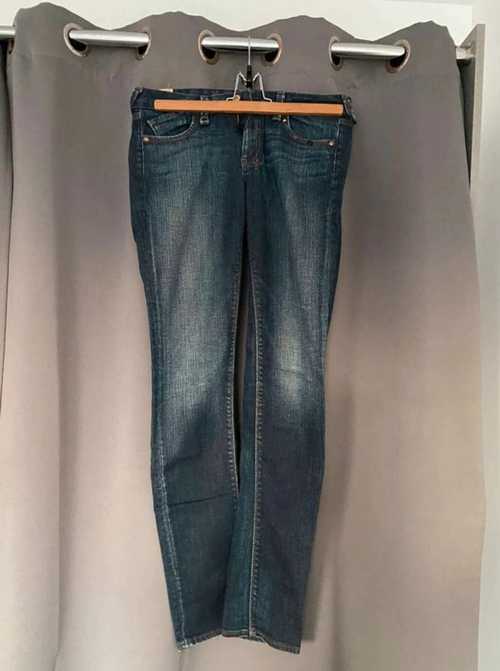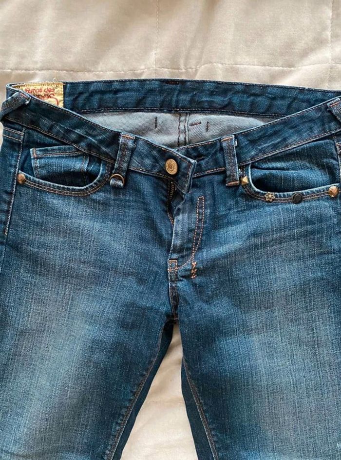 Jean Jean vintage / effet ancien Plutôt fonce Avec poches devant et poches derrière Détails sur les poches devant Grosse fermeture éclaire sur les poches derrière Plutôt large en bas Bon état Le temps des cerises Taille 29 18€