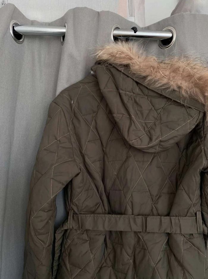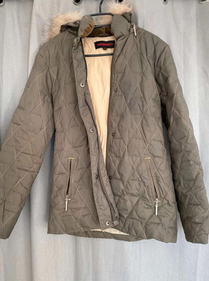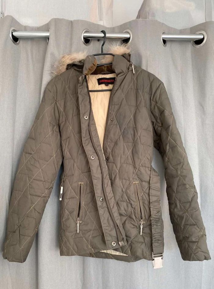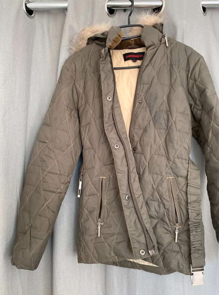 Parka Grosse parka kaki avec ceinture Deux poches sur le devant Capuche avec fourrure Bon état mais ⚠️⚠️ tâches sur le devant (voir photos) Marque Diemmedi Taille 42 7€