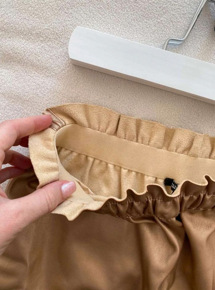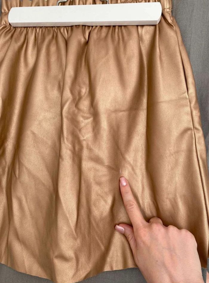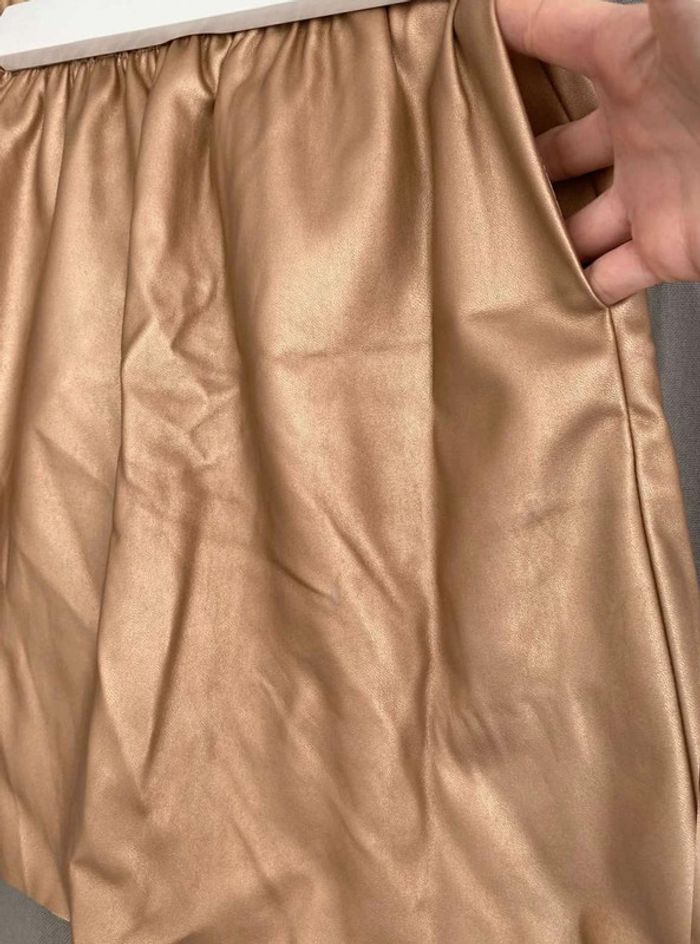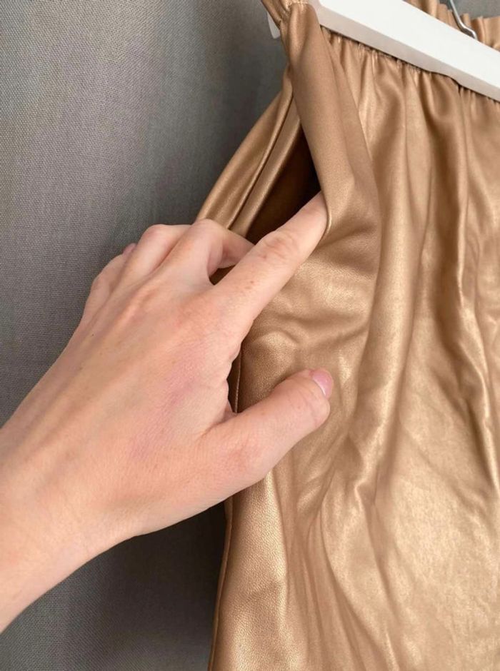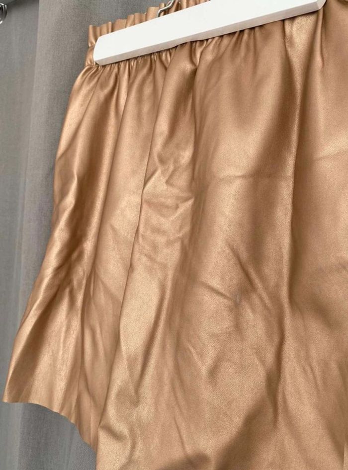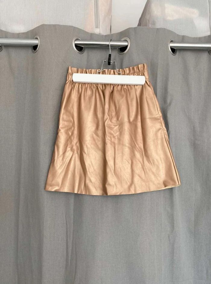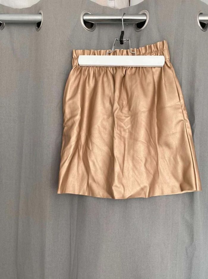Jupe doré brillante ÉLASTIQUE à la taille, et deux poches sur le devant Jupe plutôt courte Jupe très bon état sauf une légère tache blanche sur le devant (voir photos) Marque Teddy Smith Taille XS 18€