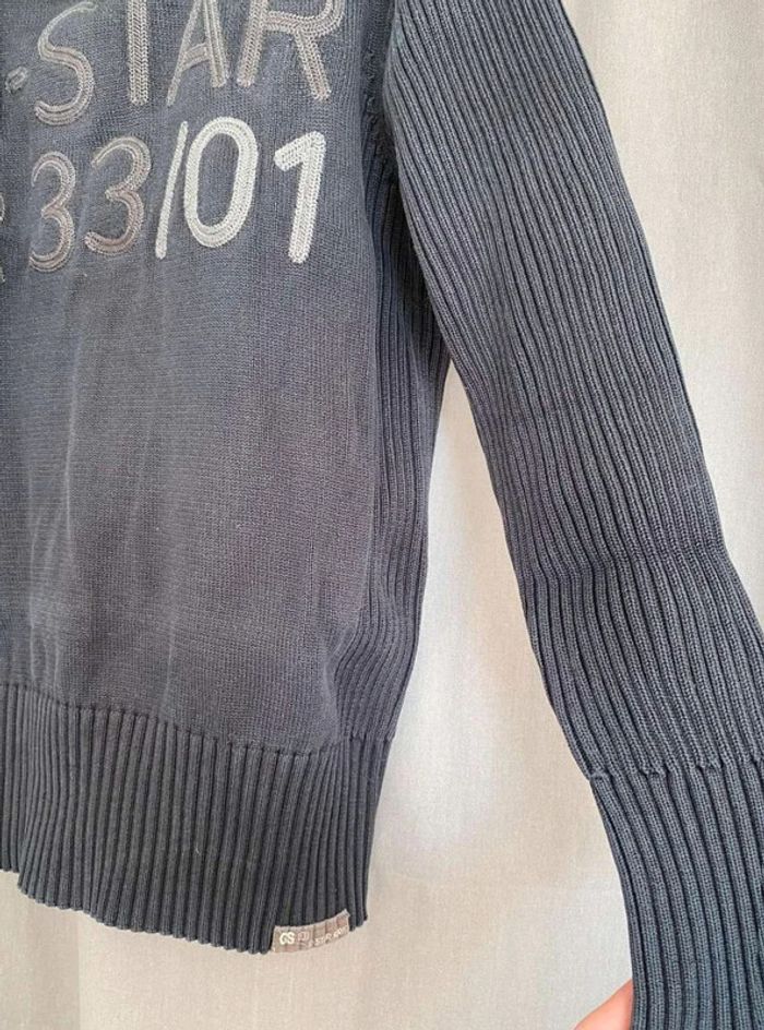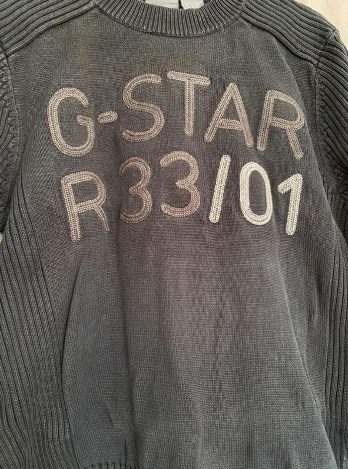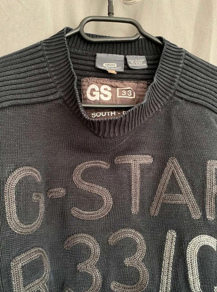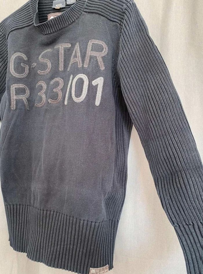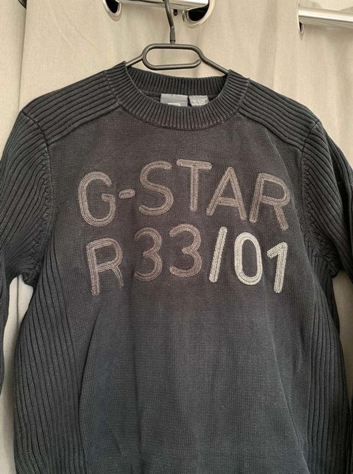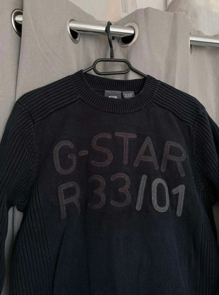 Pull Gros pull noir G-Star Style vintage Bon état mais couleur légèrement délavé Écriture sur le devant en gris fonce/ gris clair Resserre au niveau des manches et en bas Taille XL Marque G-Star 10€