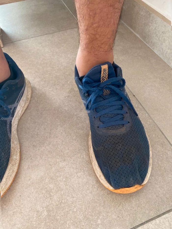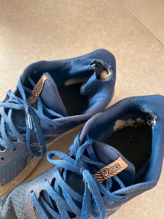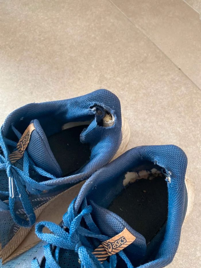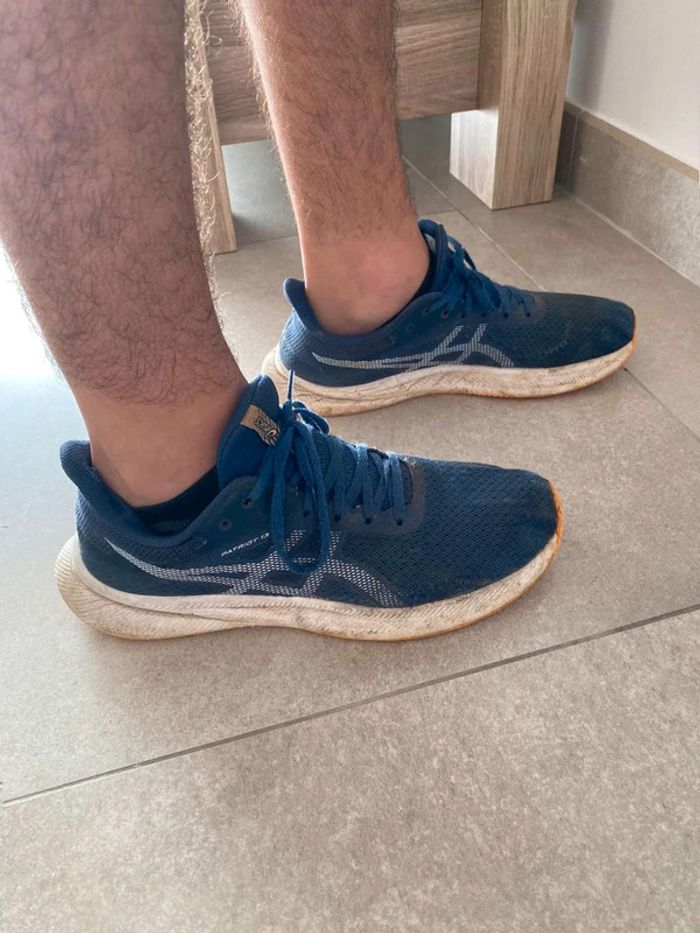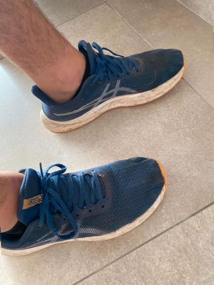 Chaussures Baskets Asics Patriote 13 Très mauvaise état Bleu marine et gris (Orange aussi) Taille 42