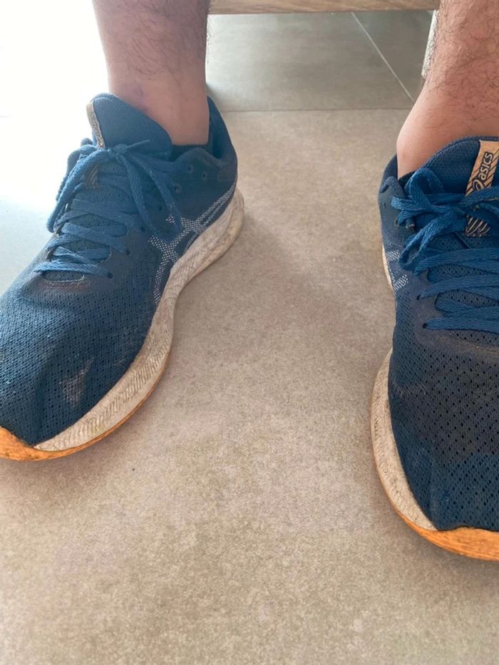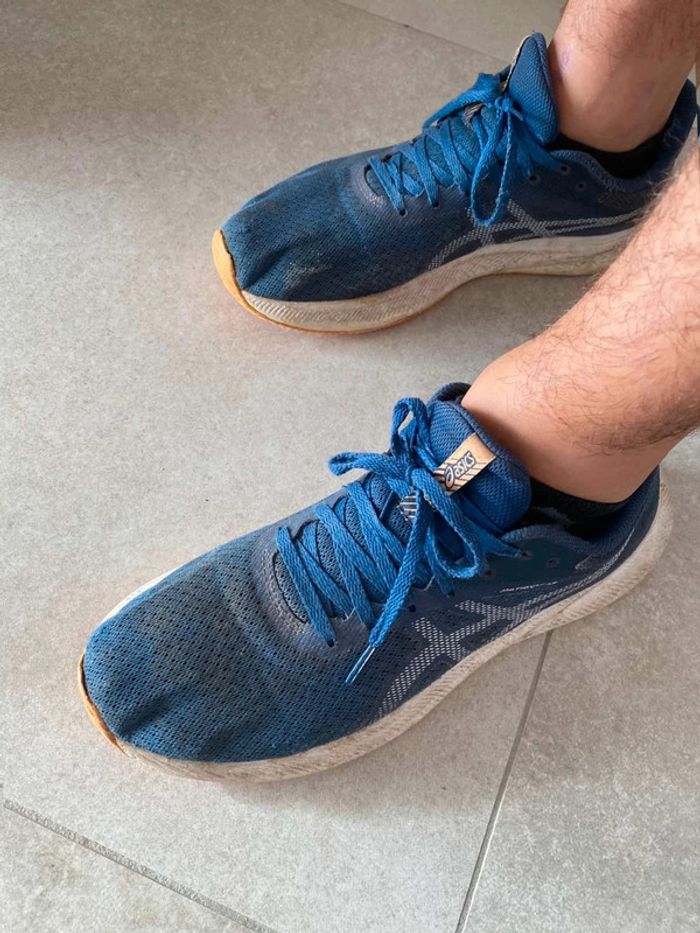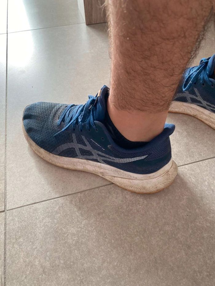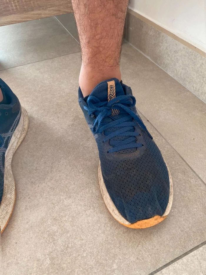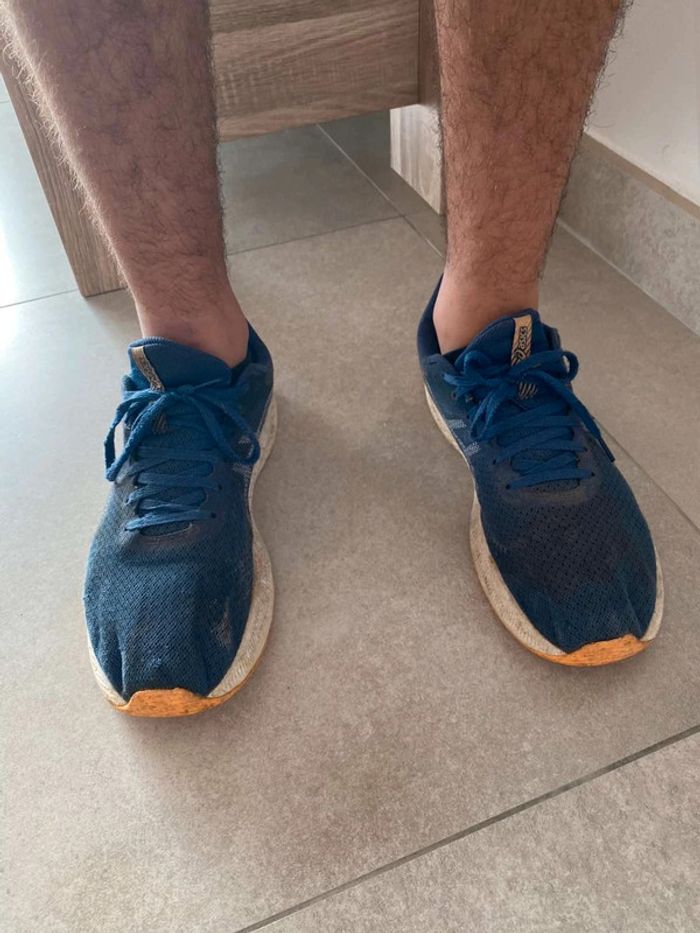 Chaussures Baskets Asics Patriote 13 Très mauvaise état Bleu marine et gris (Orange aussi) Taille 42
