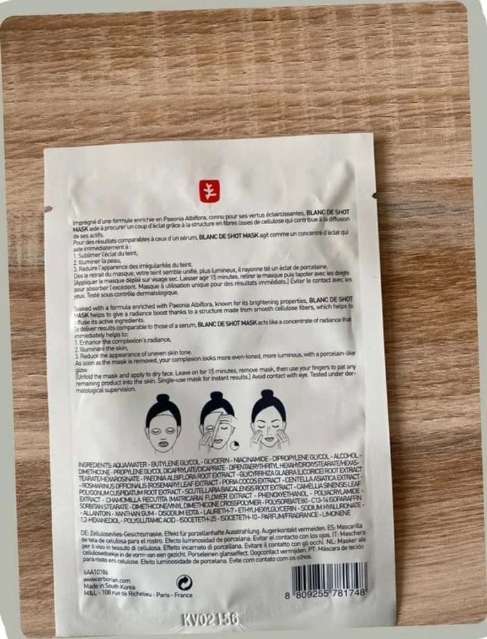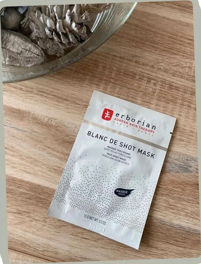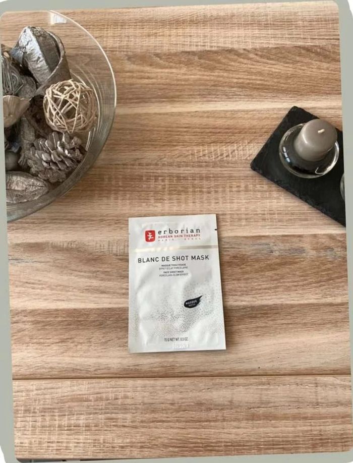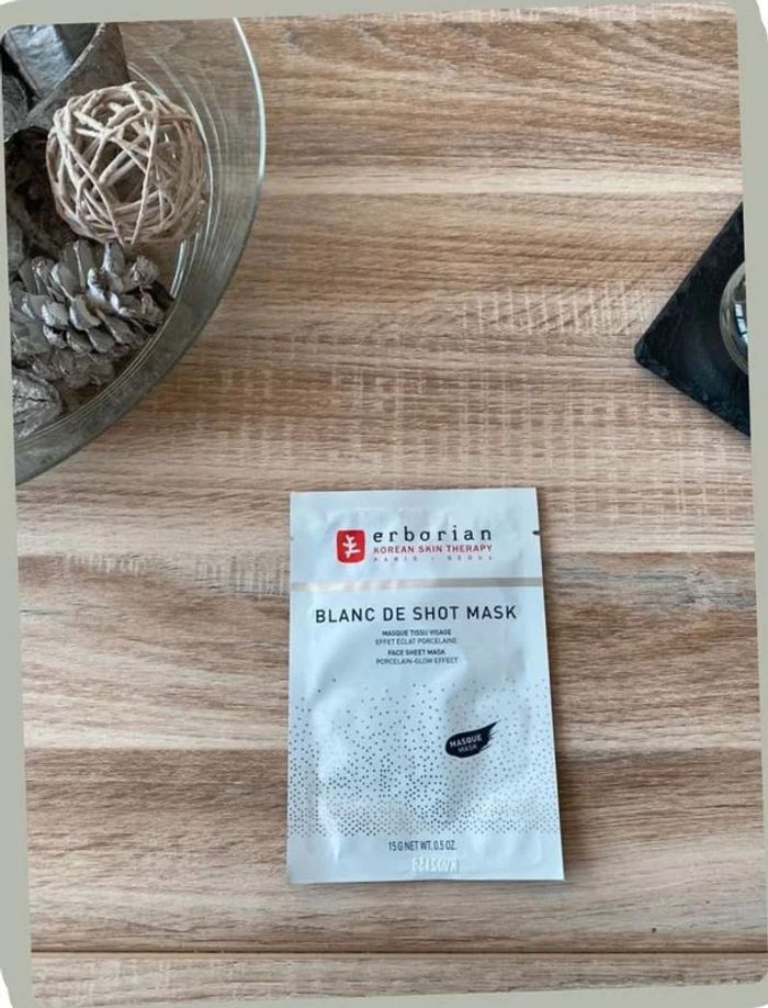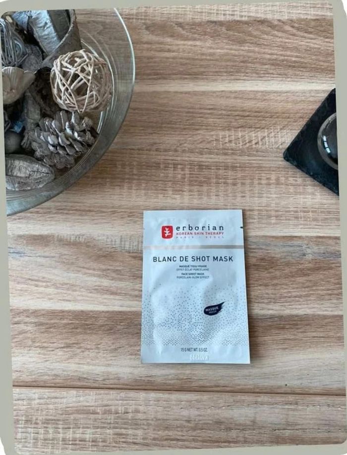 Masque visage Erborian Masque visage tissu à l’unité Acheté en magasin Acheté 7€ le masque Effet éclat porcelaine