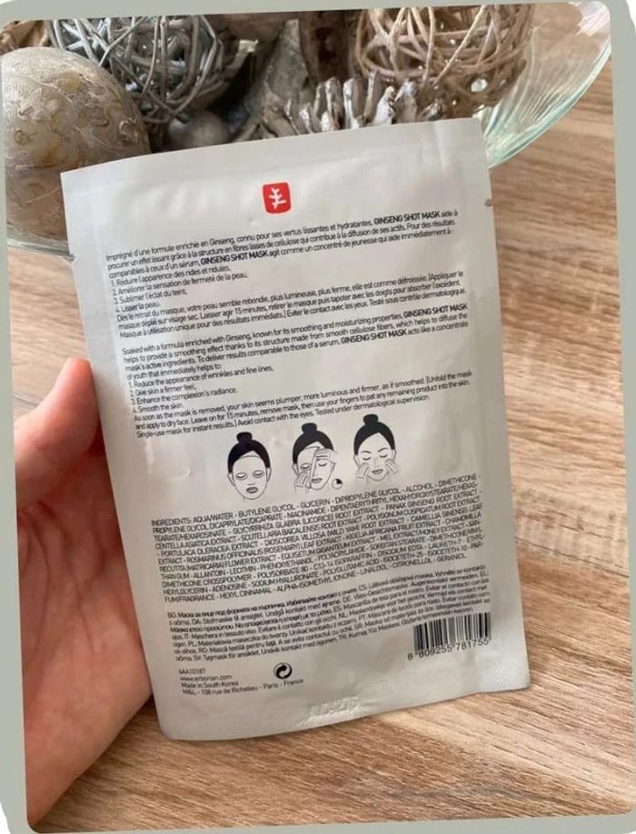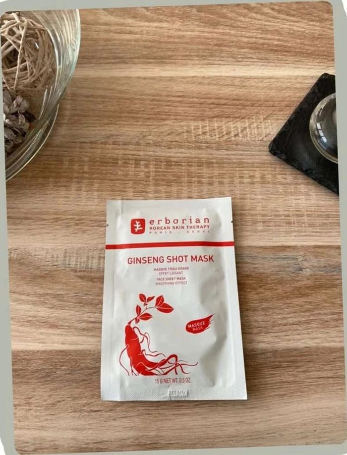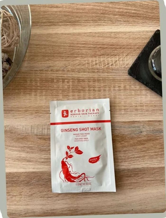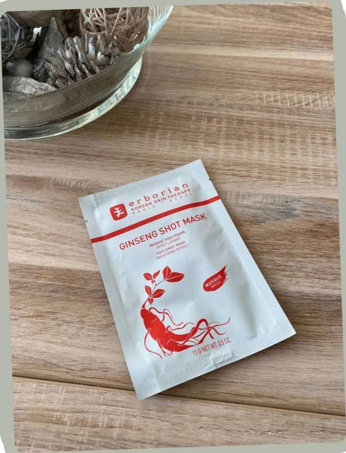 Masque Erborian acheté en magasin Masque à l’unité en tissu Masque tissu visage effet lissant Acheté 7€ le masque en magasin