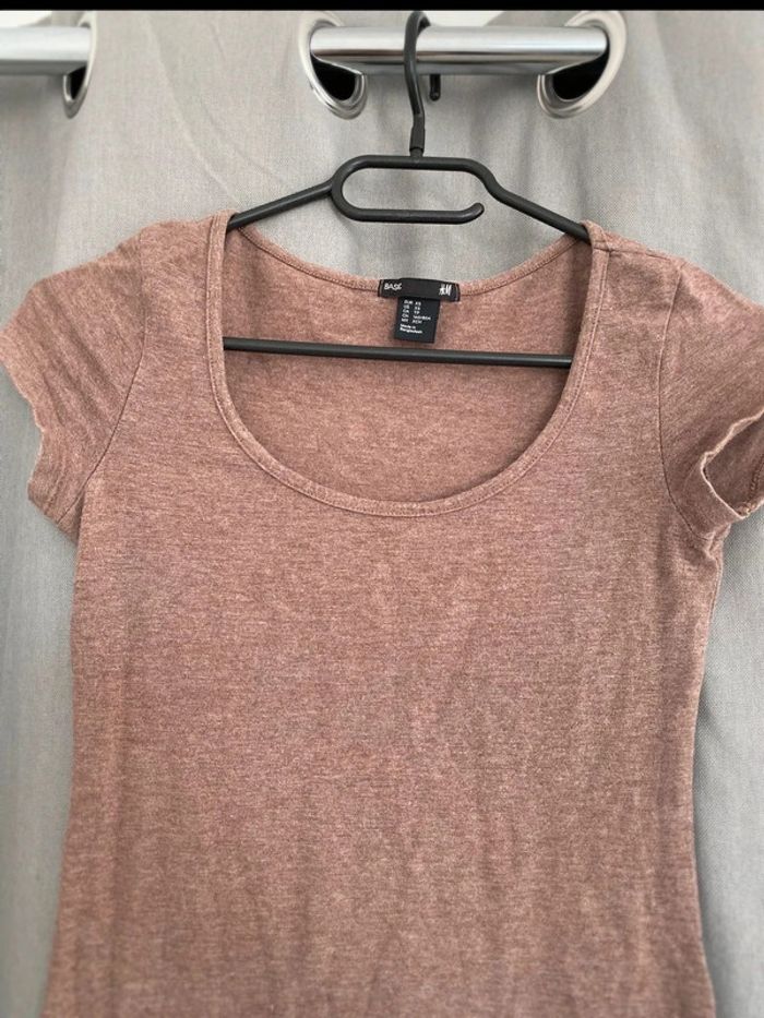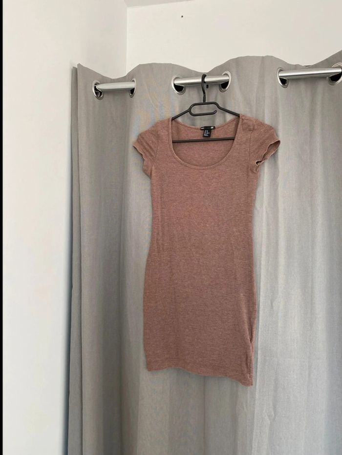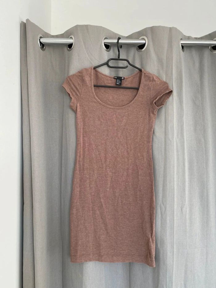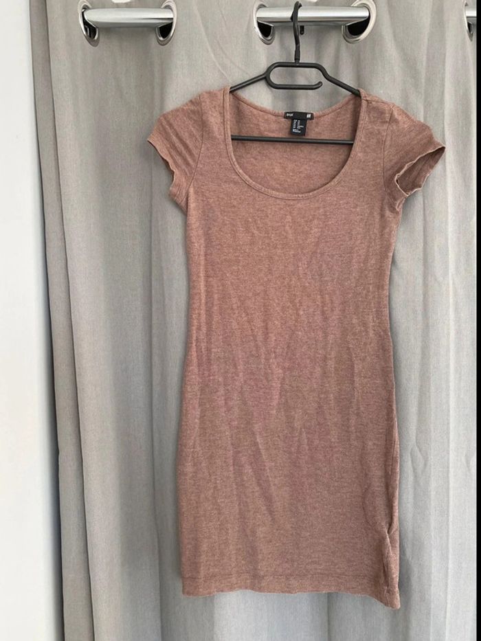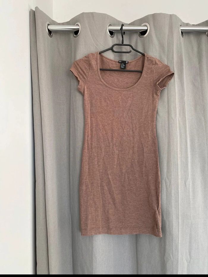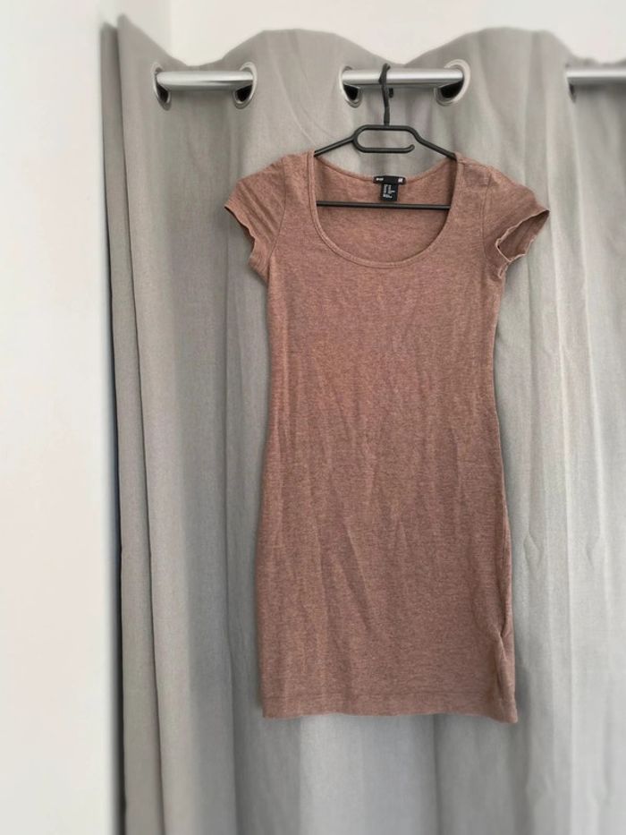 Robe Robe tee shirt unie marron Tons marron Plutôt près du corps Marque H&M Collection basic Taille XS 14€