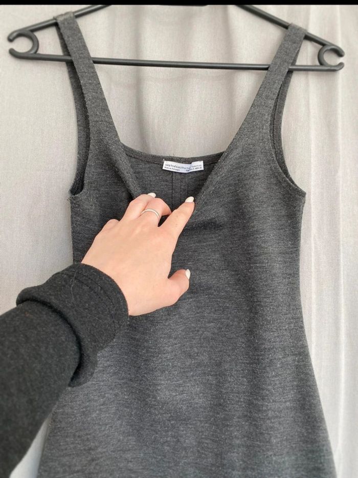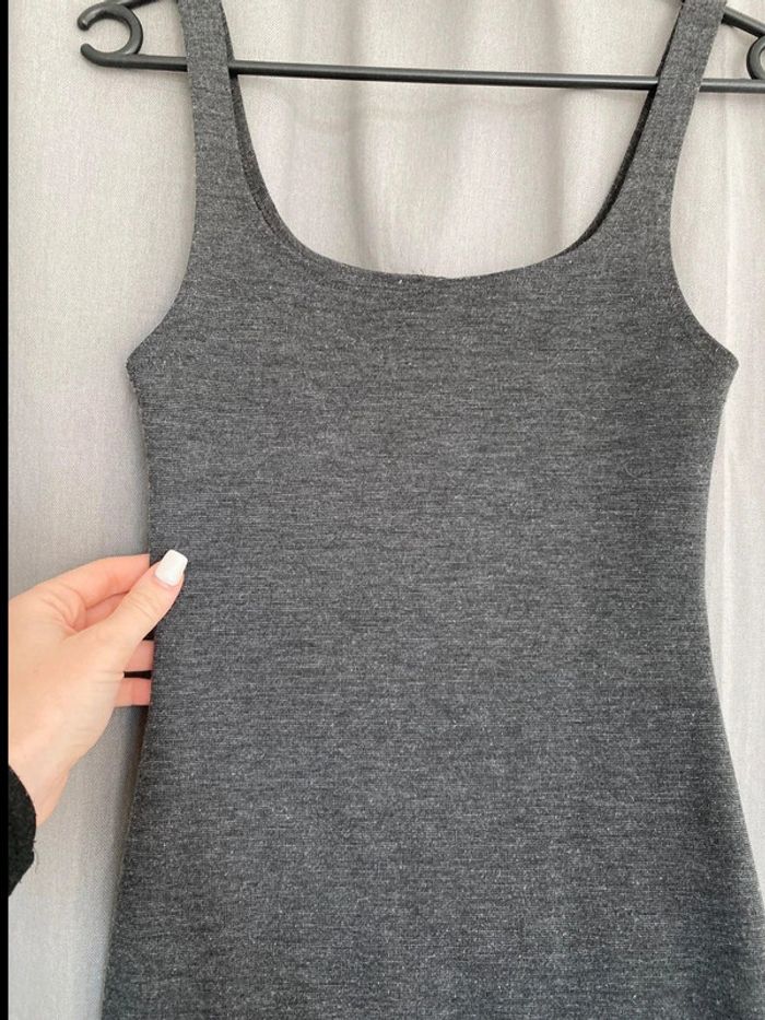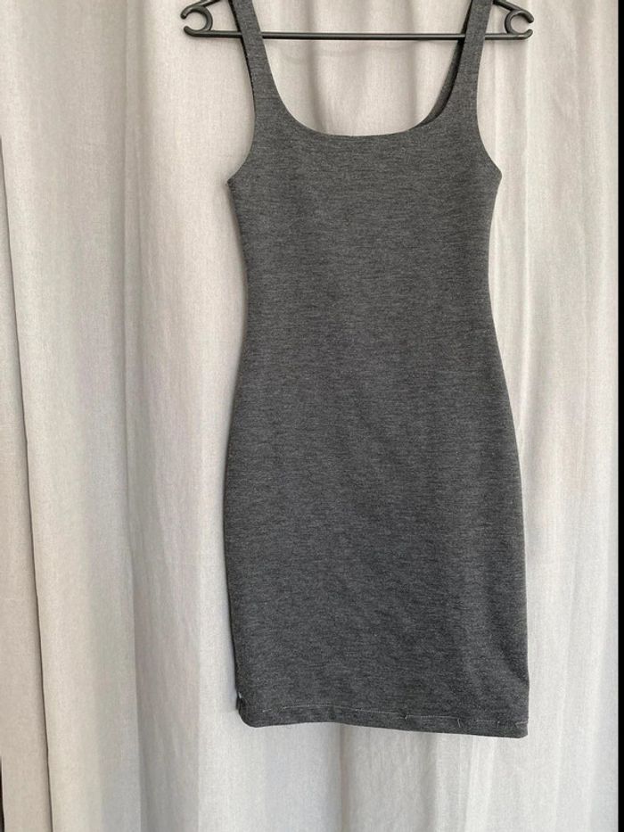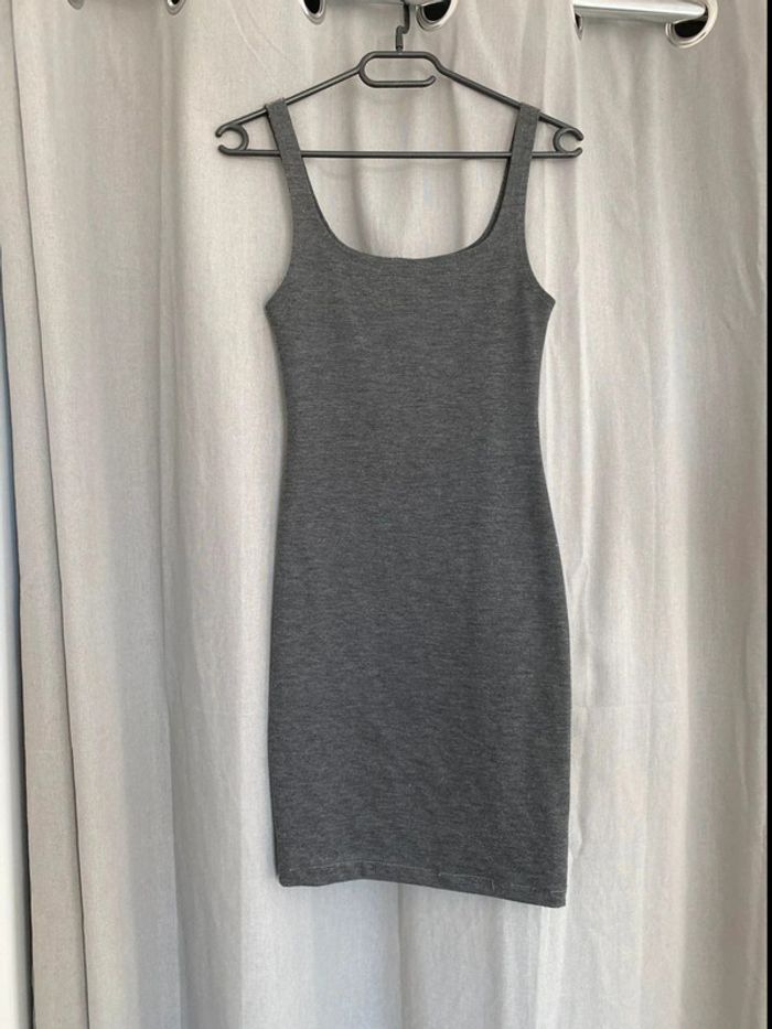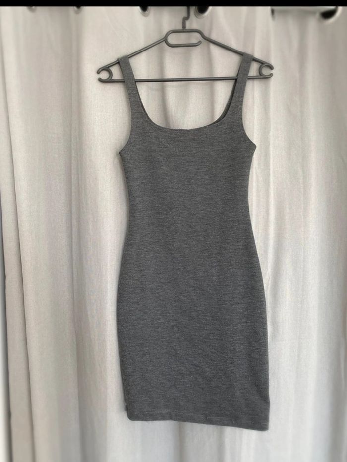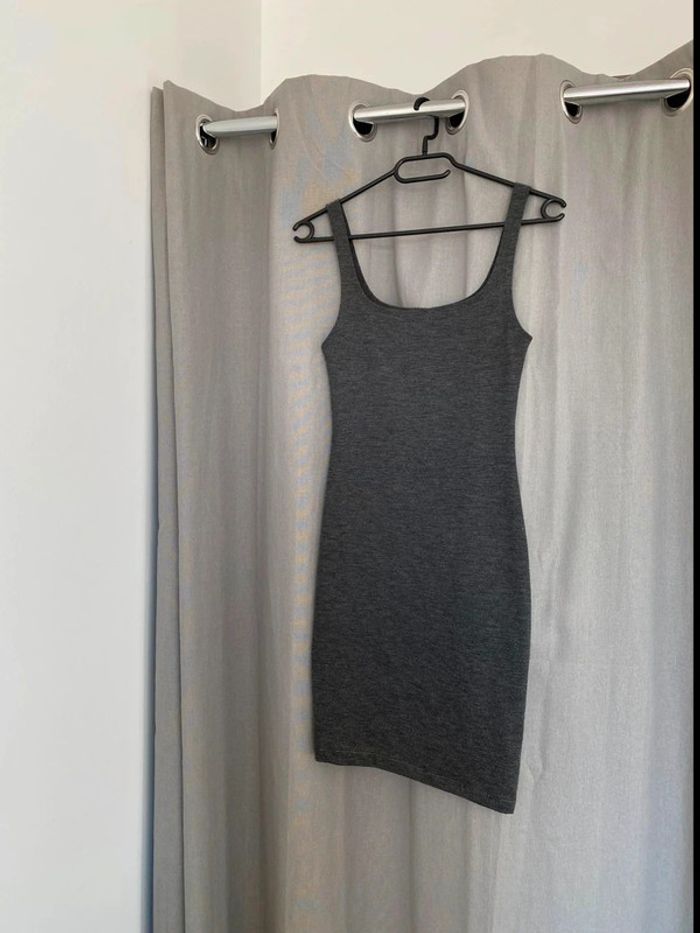 Robe grise Robe grise, plutôt près du corps à bretelles fines Robe unie Marque Zara Taille S Très bon état 14€