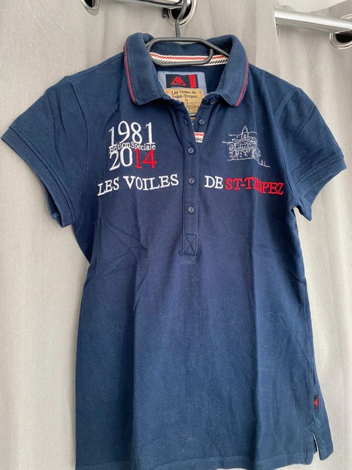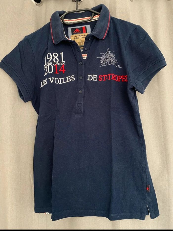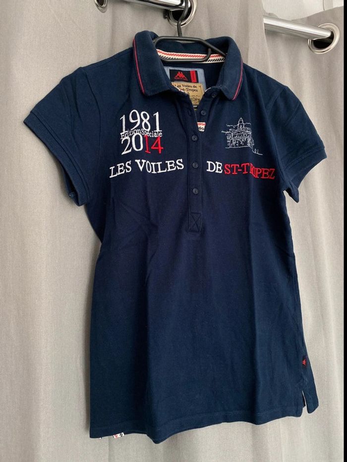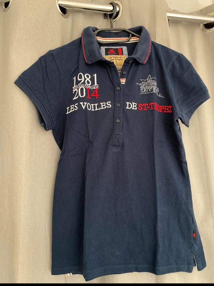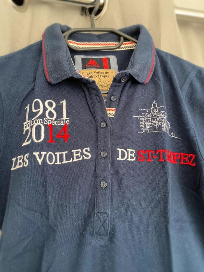 Polo Polo les voiles de St Tropez Bleu marine Taille S Très bon état ⚠️ sauf légère tâche sur le dessin derrière voir photo + étiquette coupée à l’intérieur Dessin + écriture sur le devant & Dessin à l’arrière Marque Kappa 12€