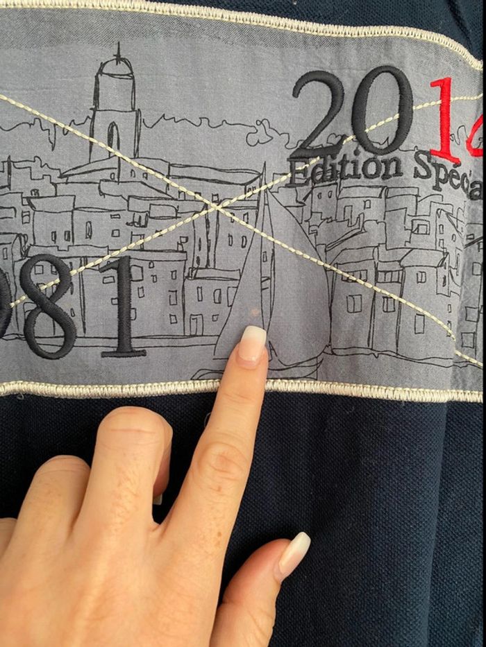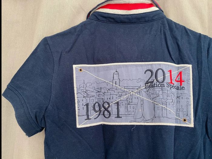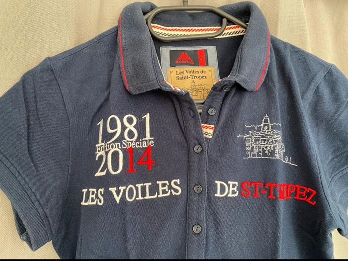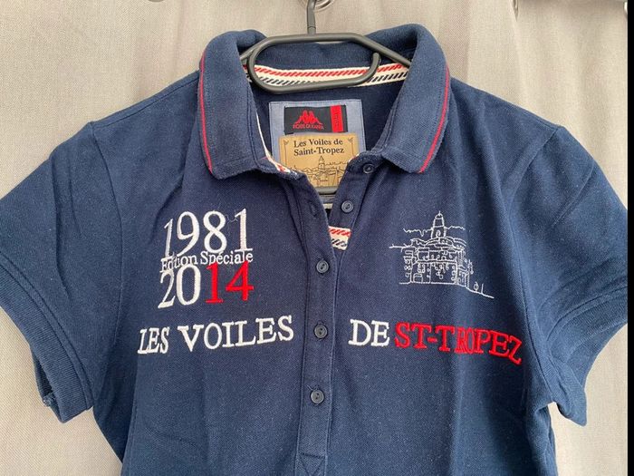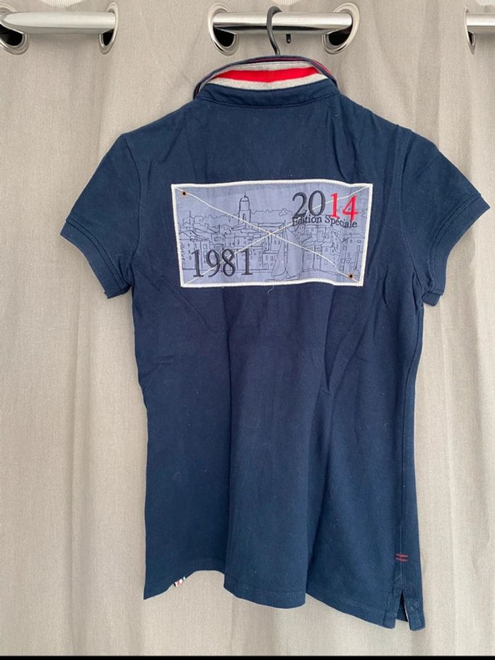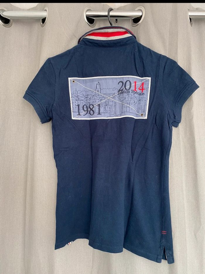 Polo Polo les voiles de St Tropez Bleu marine Taille S Très bon état ⚠️ sauf légère tâche sur le dessin derrière voir photo + étiquette coupée à l’intérieur Dessin + écriture sur le devant & Dessin à l’arrière Marque Kappa 12€