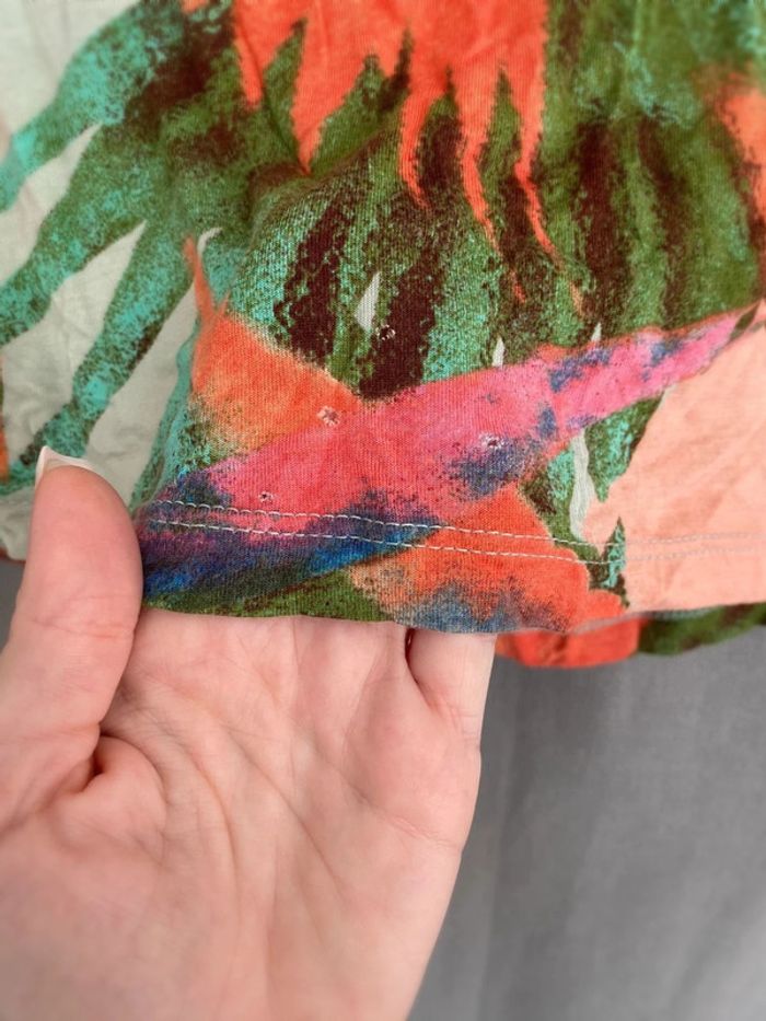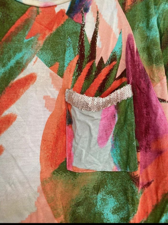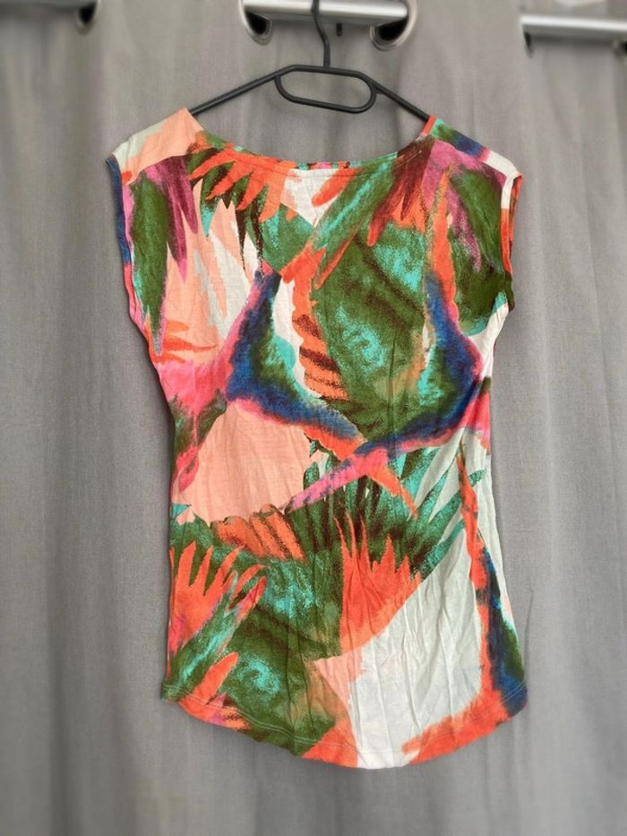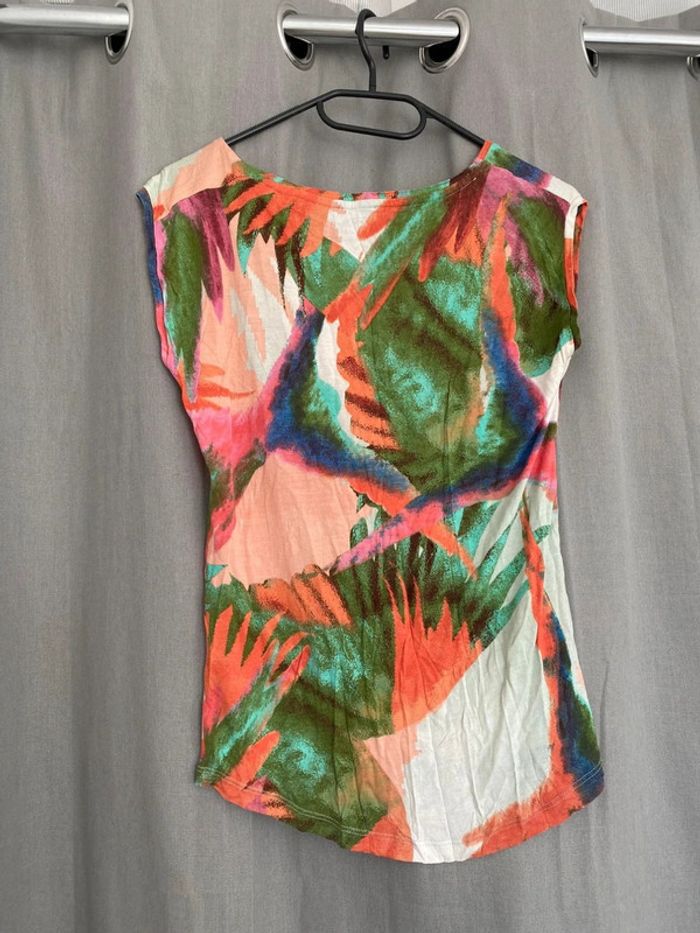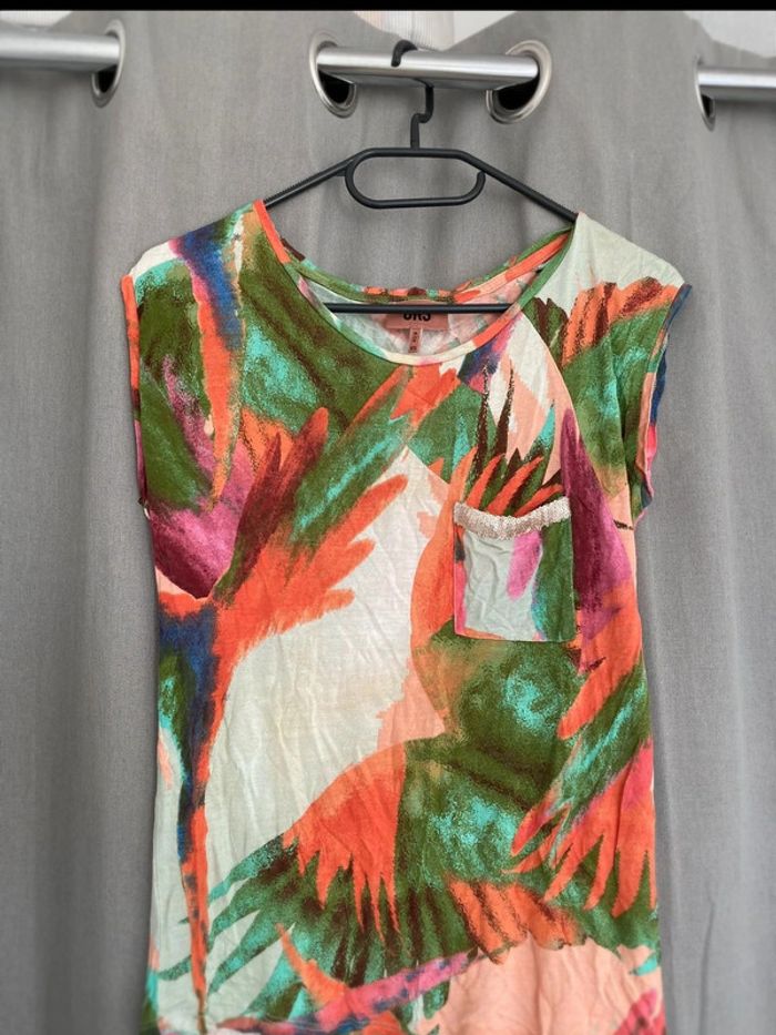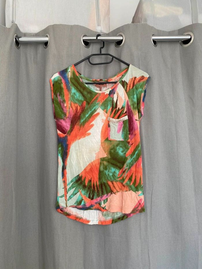 Haut été Haut été à motifs/ motifs floraux Poche sur le devant avec strass Bon état, mais quelques petits trous en bas du haut (voir photos) Marque CKS Taille XS 7€