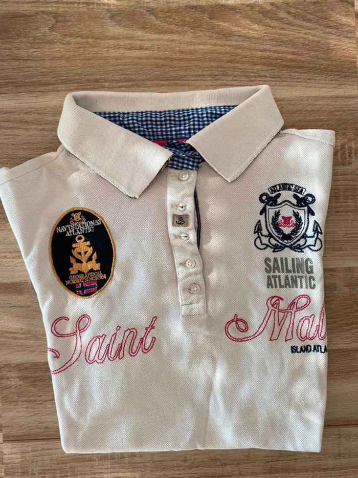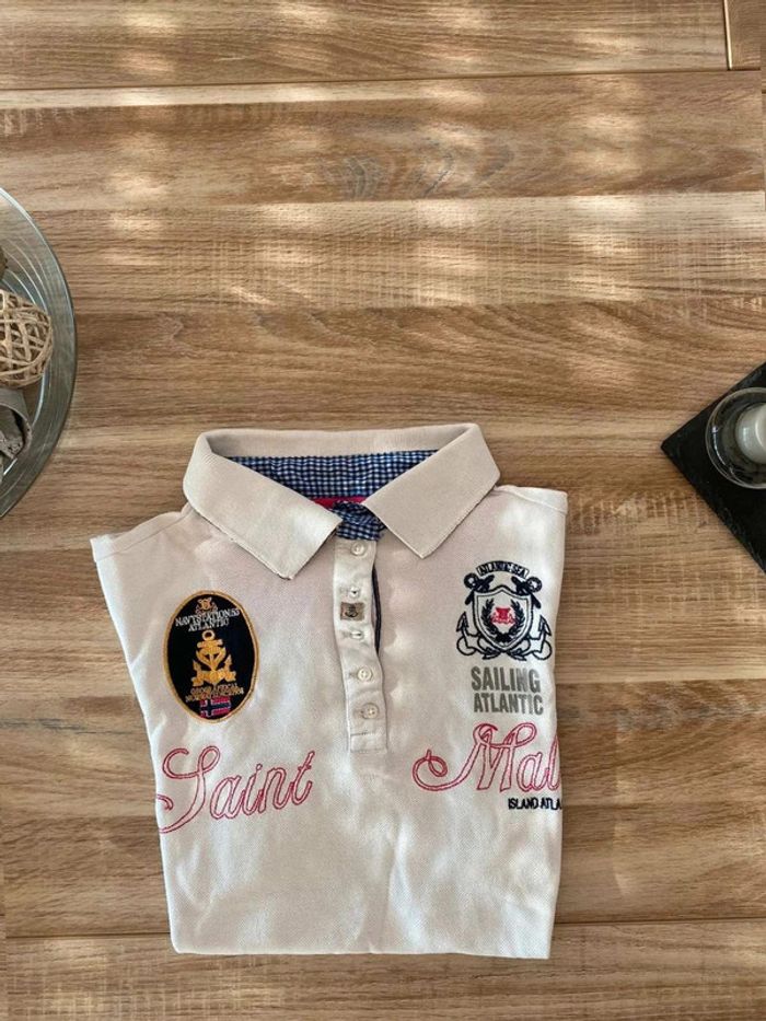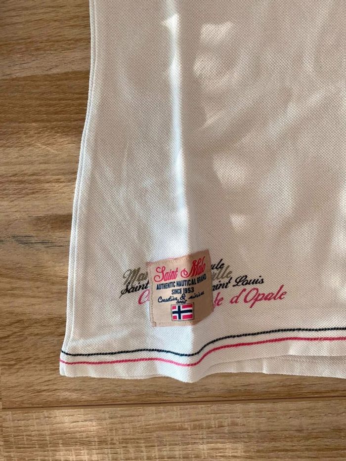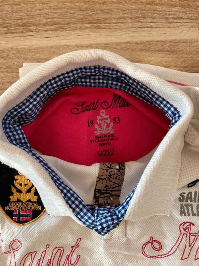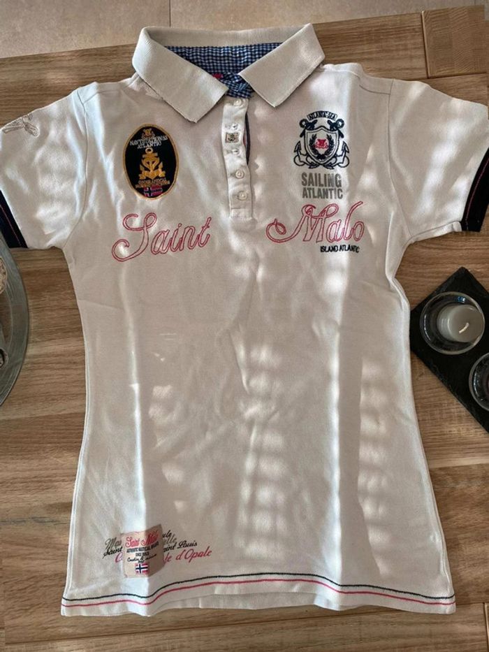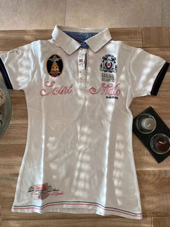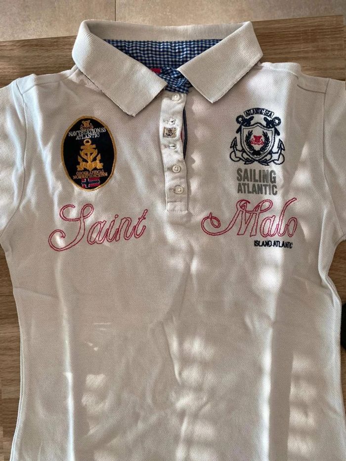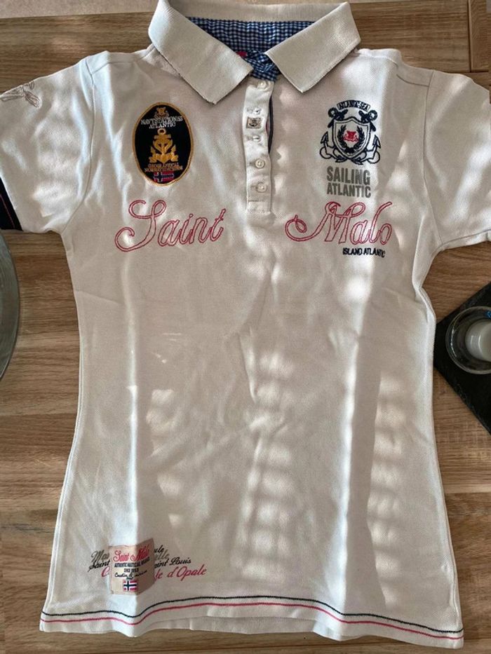 Polo Saint Malo by Geographic Norway katana 2 Bon état Blanc avec des logos et l’écriture San Malo en rose Logo sur le devant et à l’arrière Logo sur les manches également Taille 2