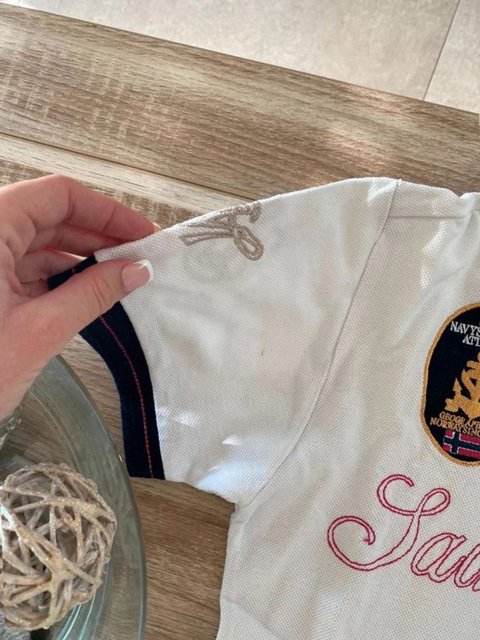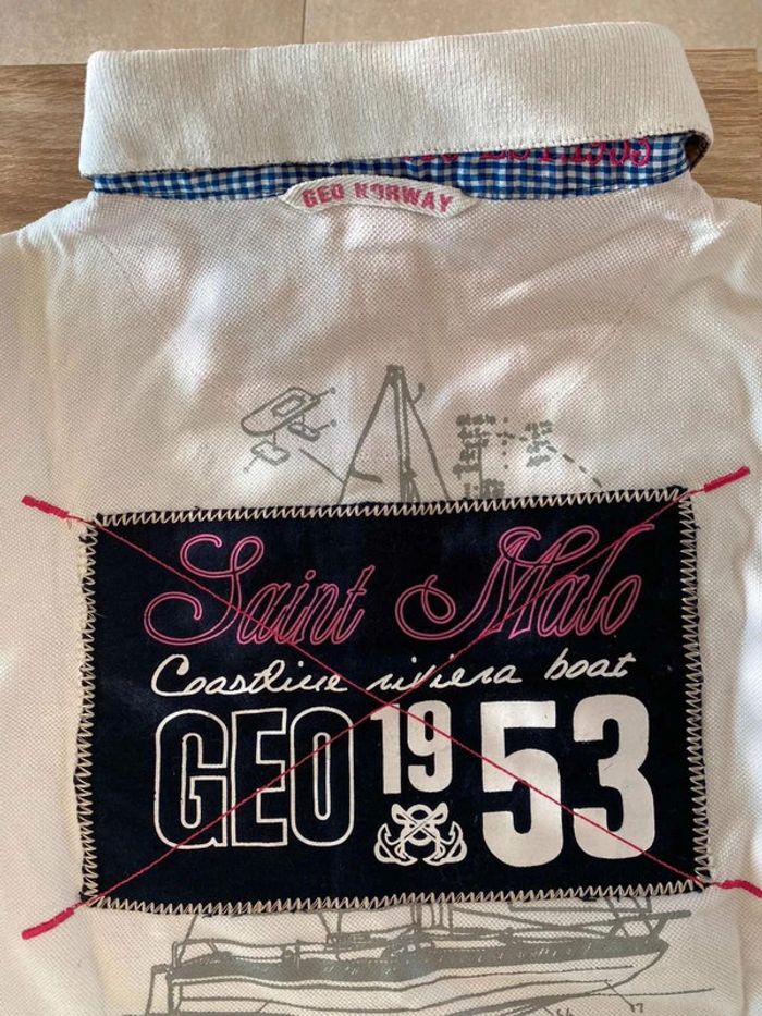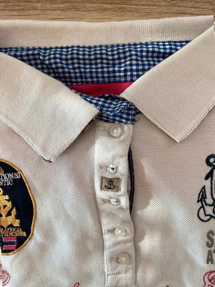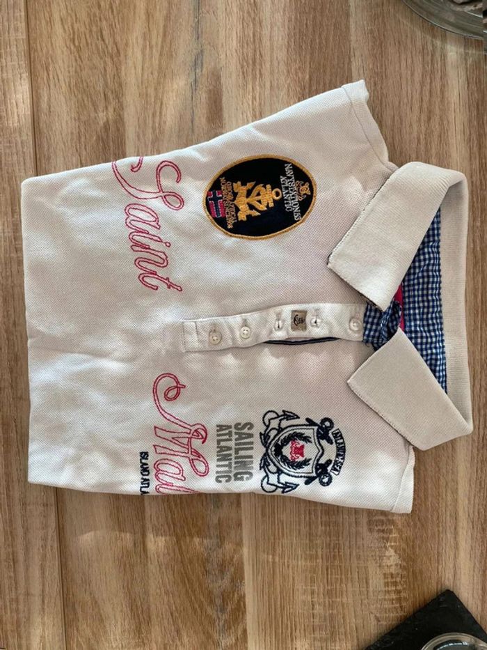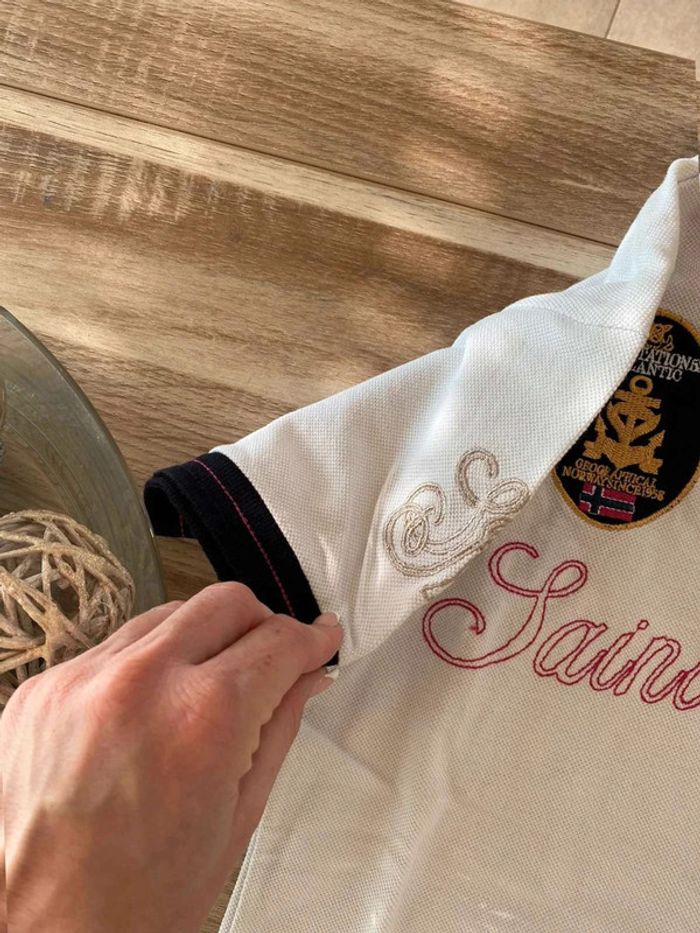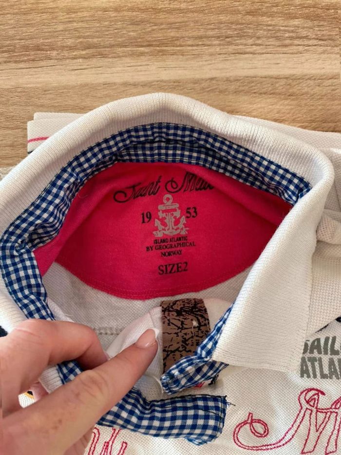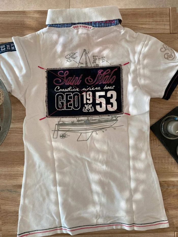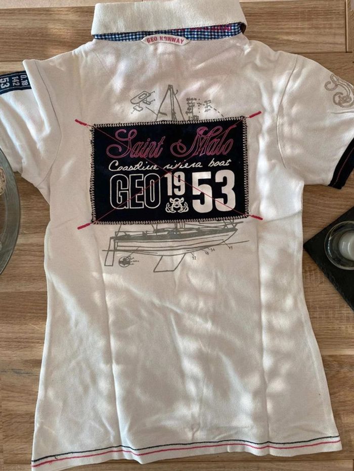 Polo Saint Malo by Geographic Norway katana 2 Bon état Blanc avec des logos et l’écriture San Malo en rose Logo sur le devant et à l’arrière Logo sur les manches également Taille 2