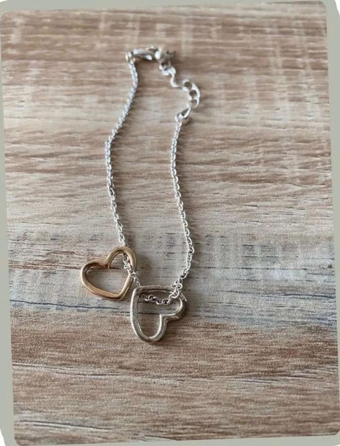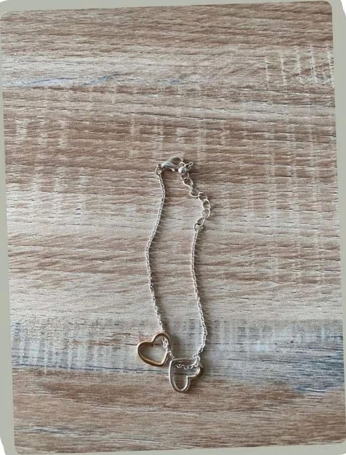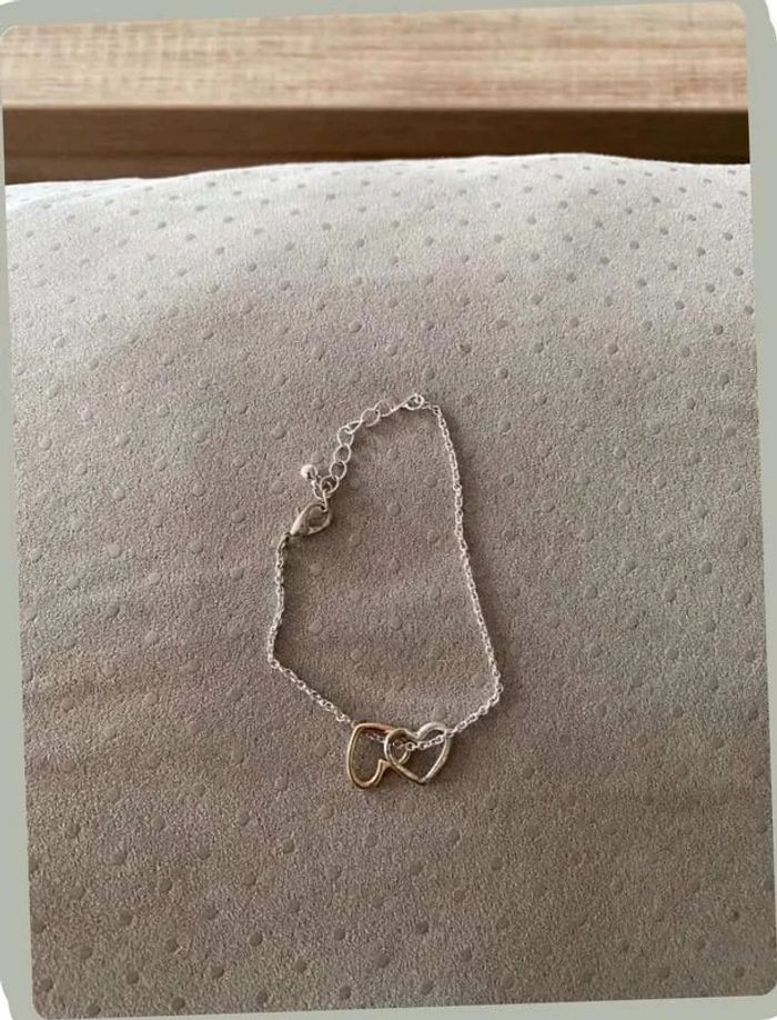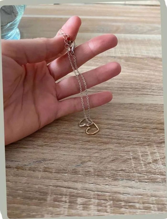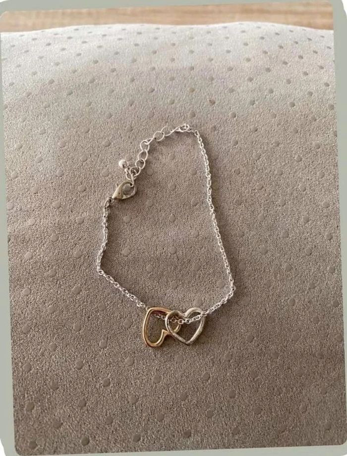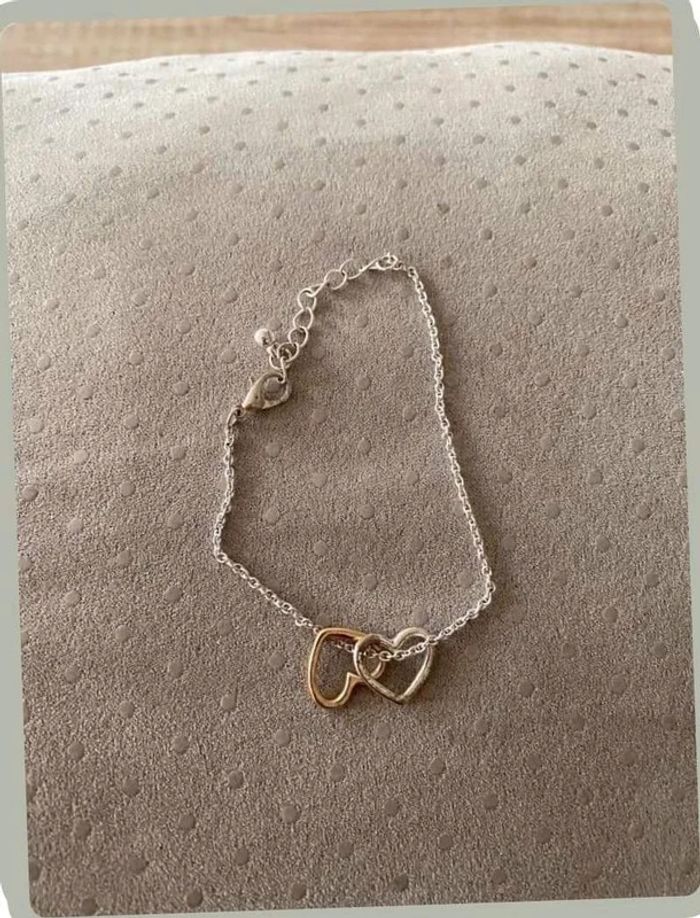 Bracelet avec deux pendentifs Un pendentif couleur argent - Un pendentif couleur or Forme coeur Le pendentif couleur argent est abîmé (mais vous pouvez l’enlever) Plutôt bon état - le bracelet (chaîne) est en bon etat N’hésitez pas à me demander plus de photos 😄