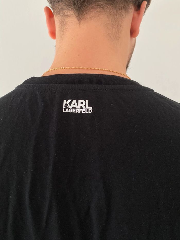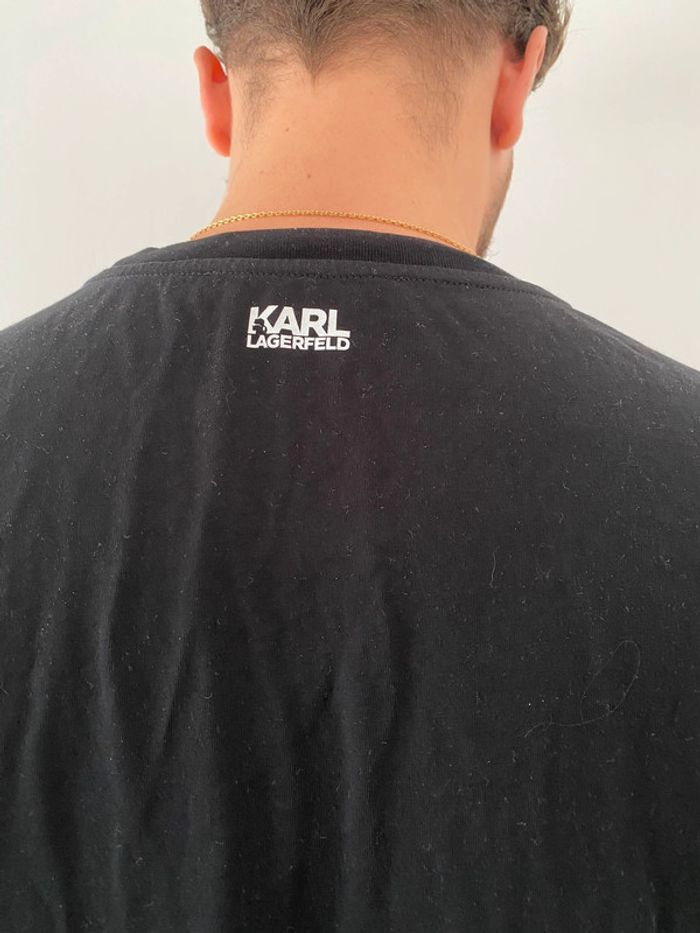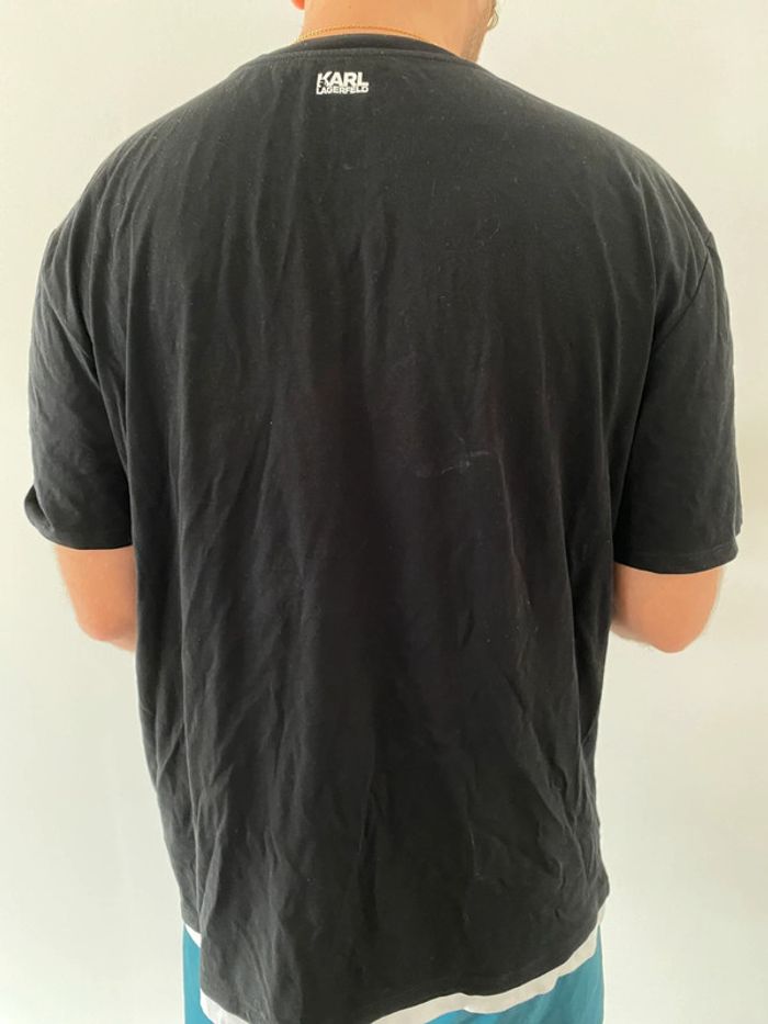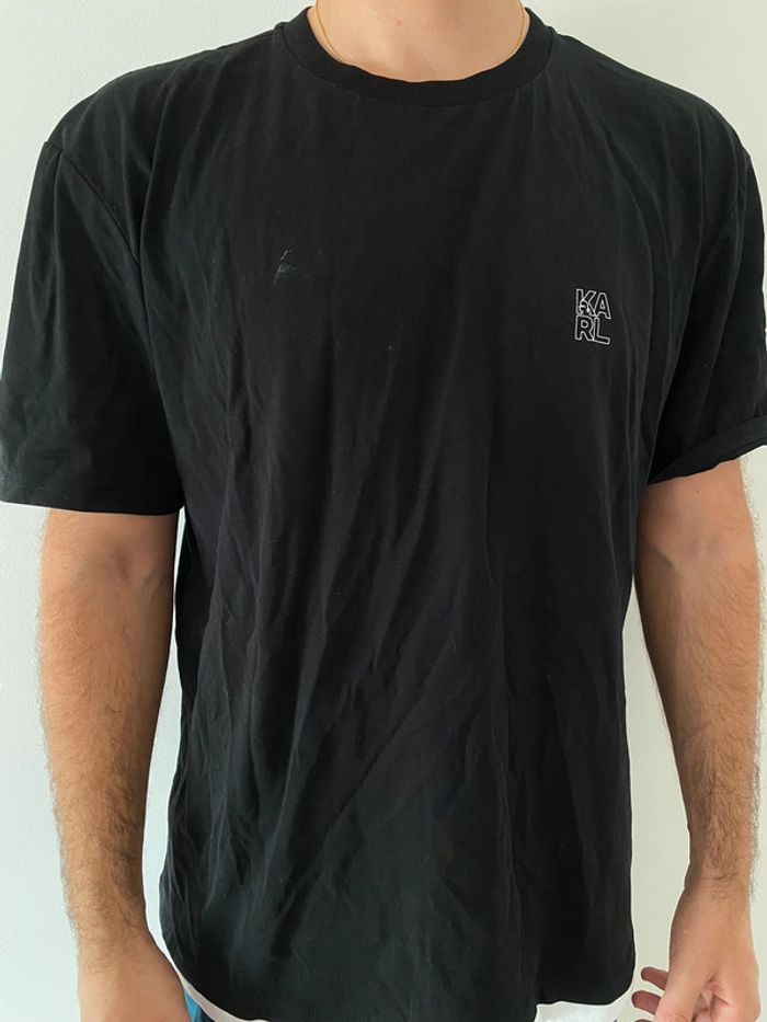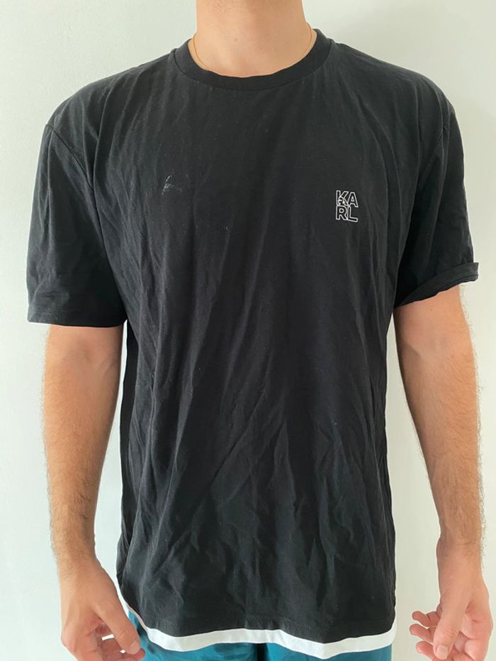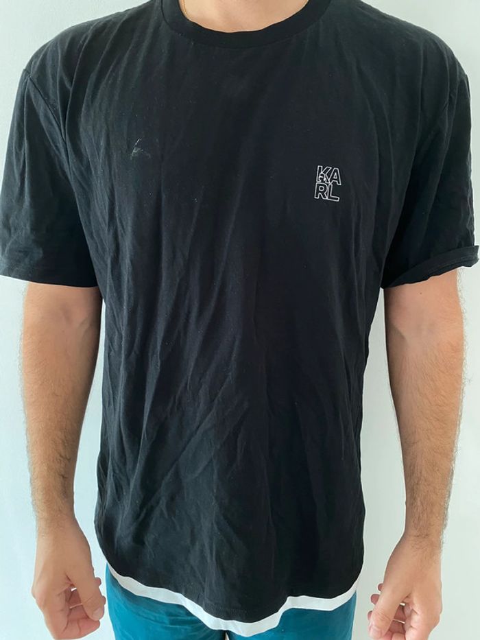 Tee shirt Karl Lagerfeld Noir et blanc (blanc en bas) Tres bon état (Porte que 2 fois mais traces blanches devant + derrière ⚠️ voir photos) Taille M Valeur magasin 90€ Logo sur le devant + derrière au niveau de la nuque 32€