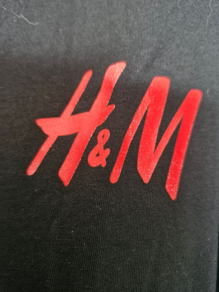 Ils sont identiques, noirs a impression H&M sur le torse en rouge Un tissu extensible pour le confort. Mesures Aisselles 50cms a plat et jusque 56cms en tirant Hauteur 69cms Je n'ai pas remarqué d'anomalie Possibilité de vente à l'unité, me contacter en privé dans ce cas.