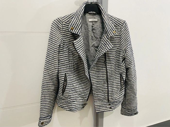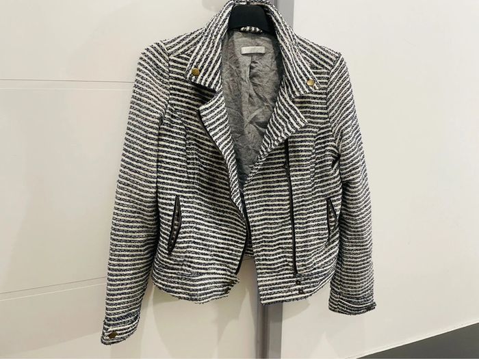 Veste à rayures Promod Taille 38 Tbe Bleu marine et blanc