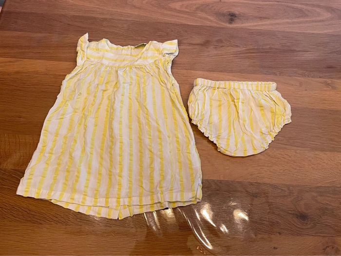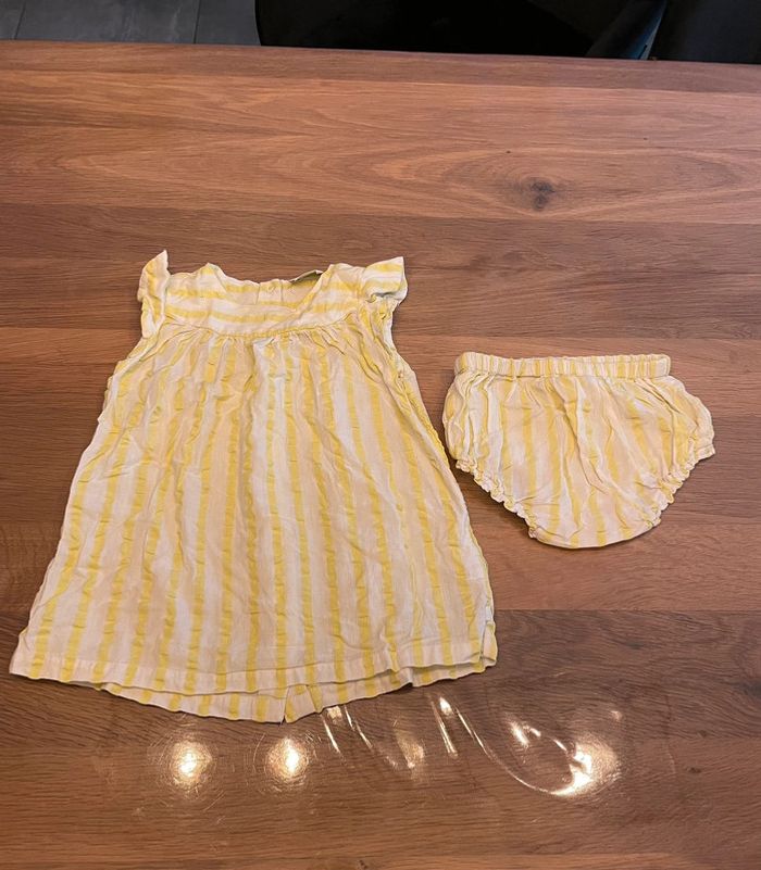 Ensemble fille Robe + sur culotte 12 mois Tape à l’œil Jaune & blanc N hésitez pas à jeter un œil dans mon dressing pour faire un lot et réduire les frais de port 🤗👍