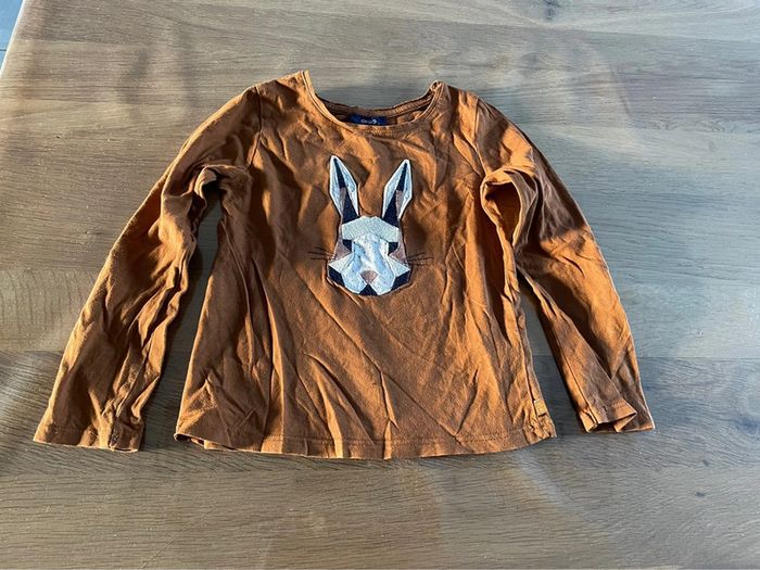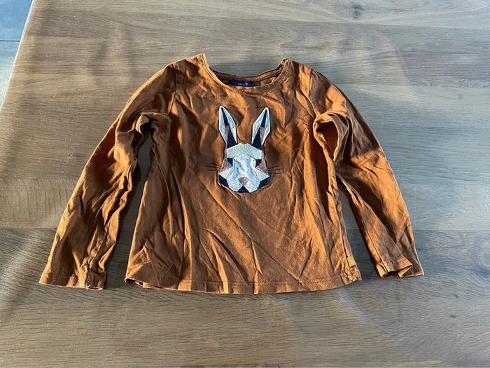 Tee shirt avec petit lapin Manches longues Camel Okaidi , 5 ans N hésitez pas à faire un tour dans mon dressing pour faire un lot et réduire les frais de port 👍