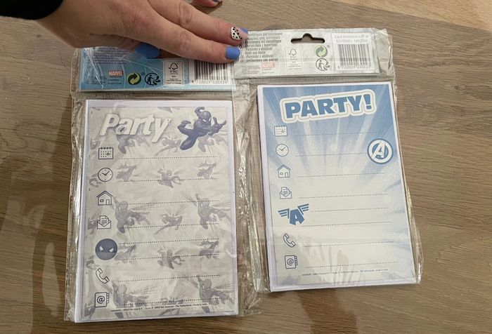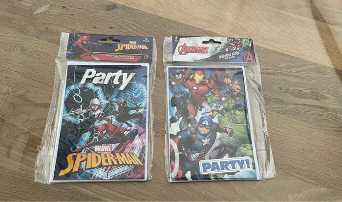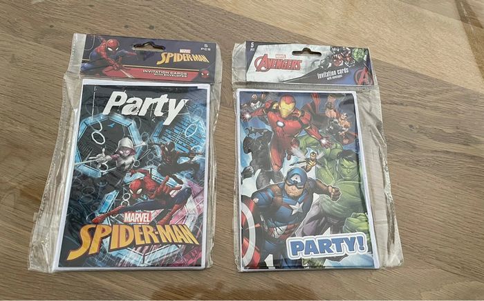 10 Cartes d’invitation d’anniversaire avec enveloppe Spiderman / Marvel avengers Jamais ouvert 2 paquets de 5