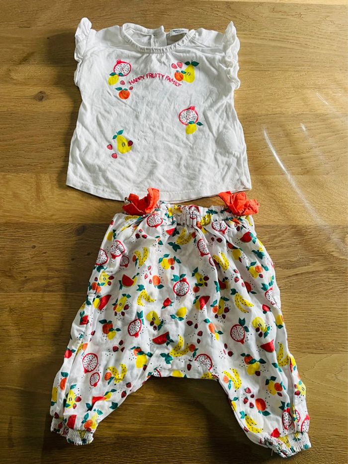 Ensemble tape à l’œil été Sarouel + tee shirt Très sympa , taille 6 mois N hésitez pas à regarder mes autres articles! Envoi rapide et soigné 🤗