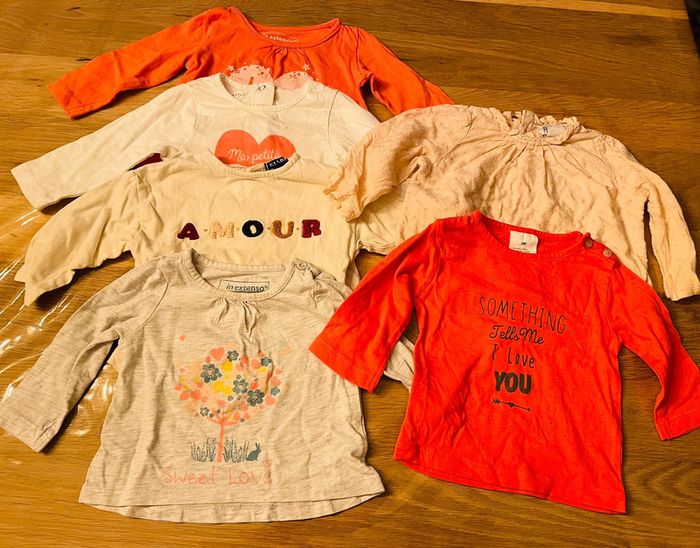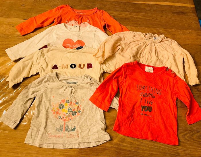 Lot de 6 hauts manches longues Taille 3 mois Divers marques : R mini, kiabi , in extenso , orchestra N hésitez pas à jeter un œil dans mon dressing pour faire un lot et réduire les frais de port 🤗👍