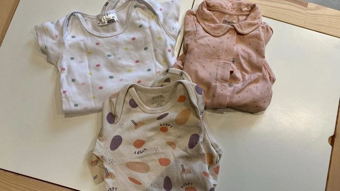 Lot 3 bodies 1 manches courte 9/12 mois 1 manches longues 18 mois 1 manches longues 24 mois Très bon état