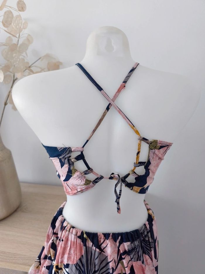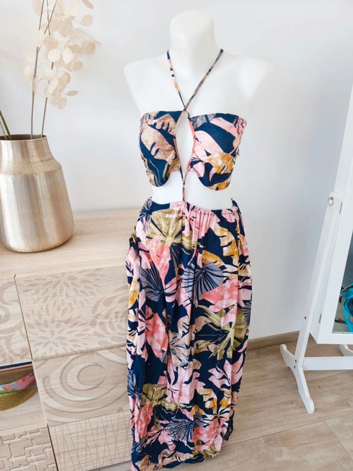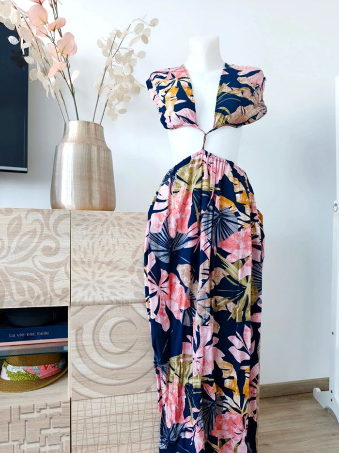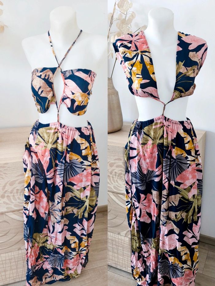 Combo jupe et haut Multi positions, à porter à votre convenance (droit, croisé, épaules couvertes ou non ...) Peut être porté en jupe longue uniquement Motif fleuri fond bleu marine Taille unique Envoi possible le jour même avec mondial Relay ou Chronopost ou remise en main propre sur Saleilles #ldura38 #ldura40 #ldura42