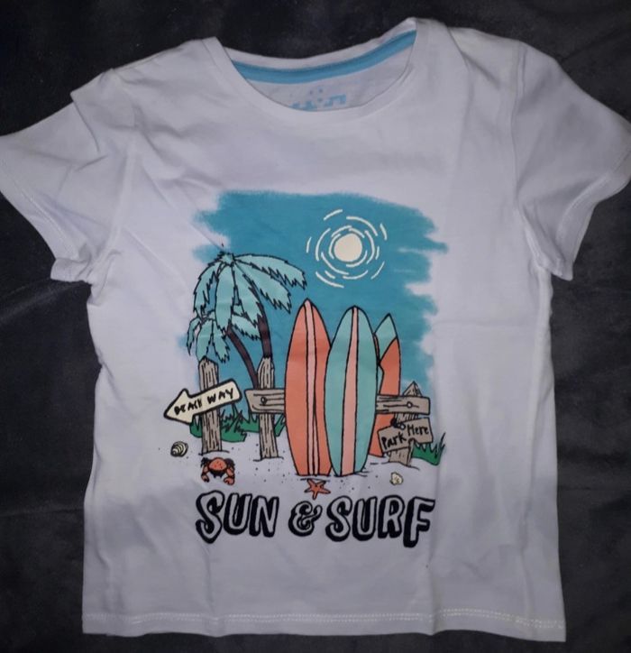 Vends un T-shirt en 5-6 ans propre, lavé, repassé Porté 1 ou 2 fois (linge chez les grands parents) 3 e