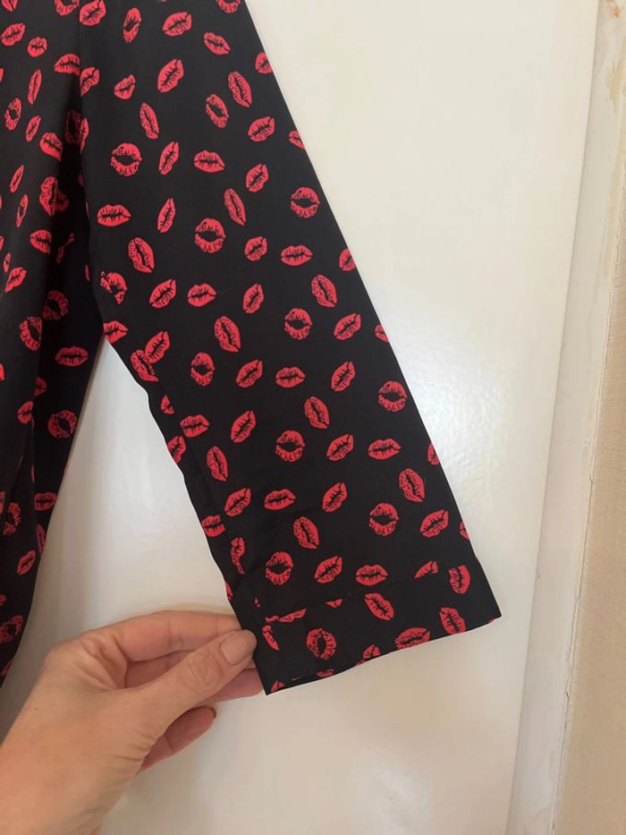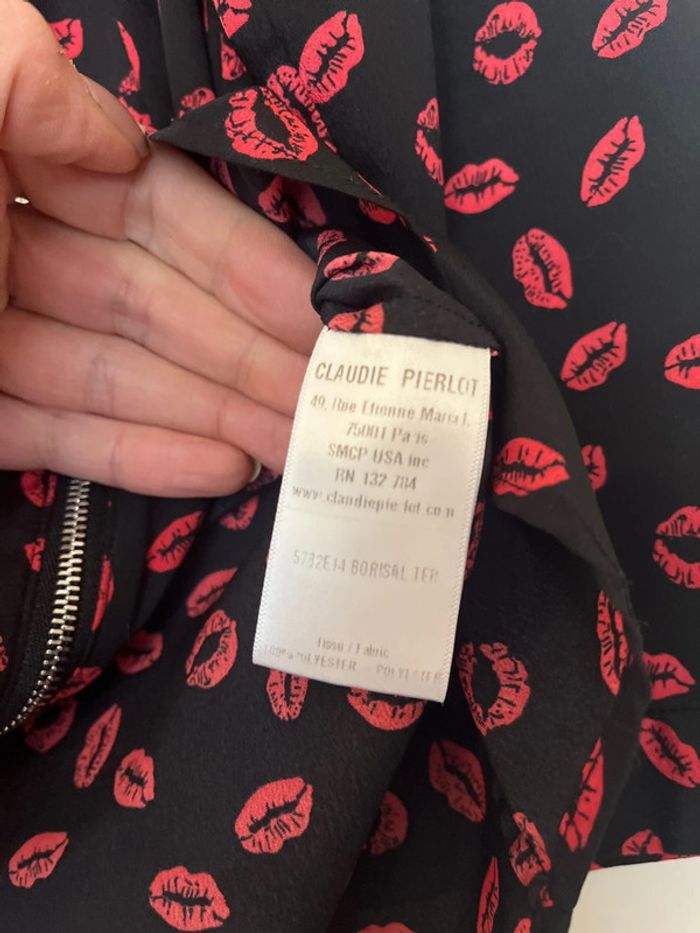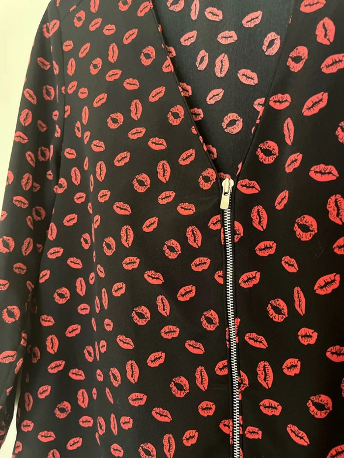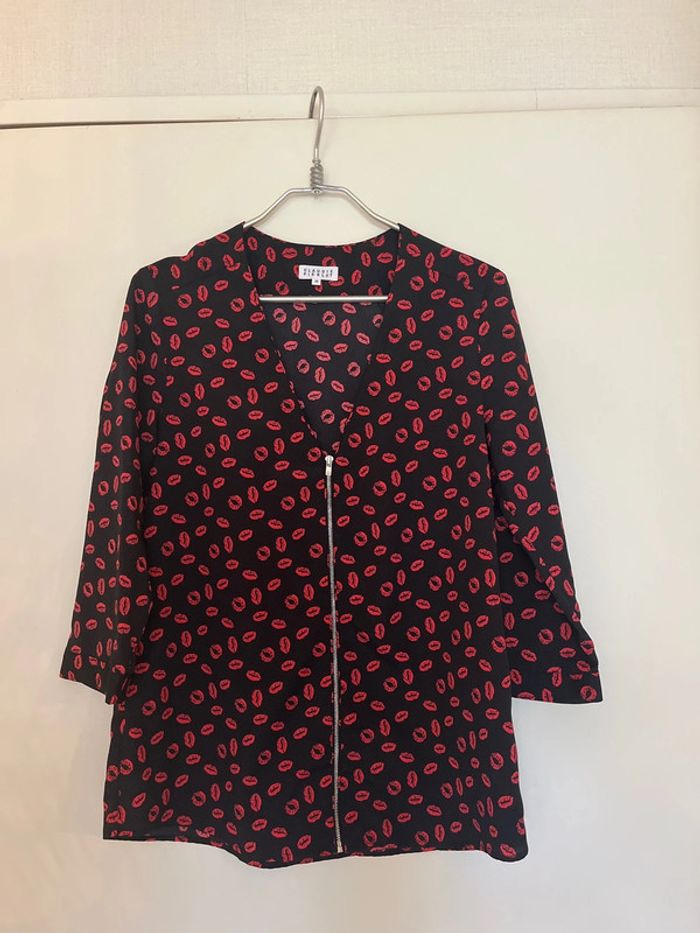 Blouse noire et rouge motif « baiser » Manche 3/4 Fermeture éclair sur le devant Marque Claudie Pierlot Taille 38 #veronika35_tailleM