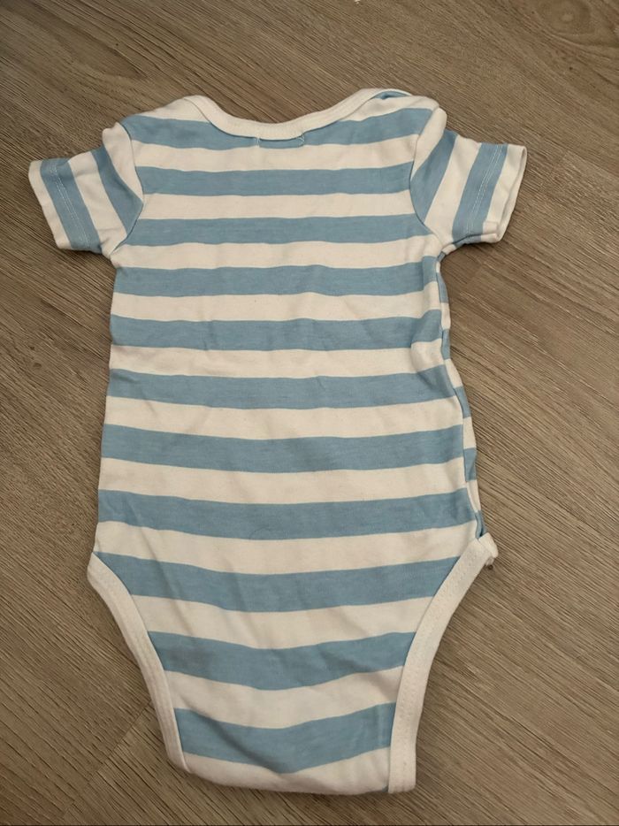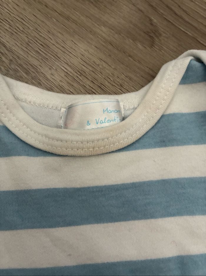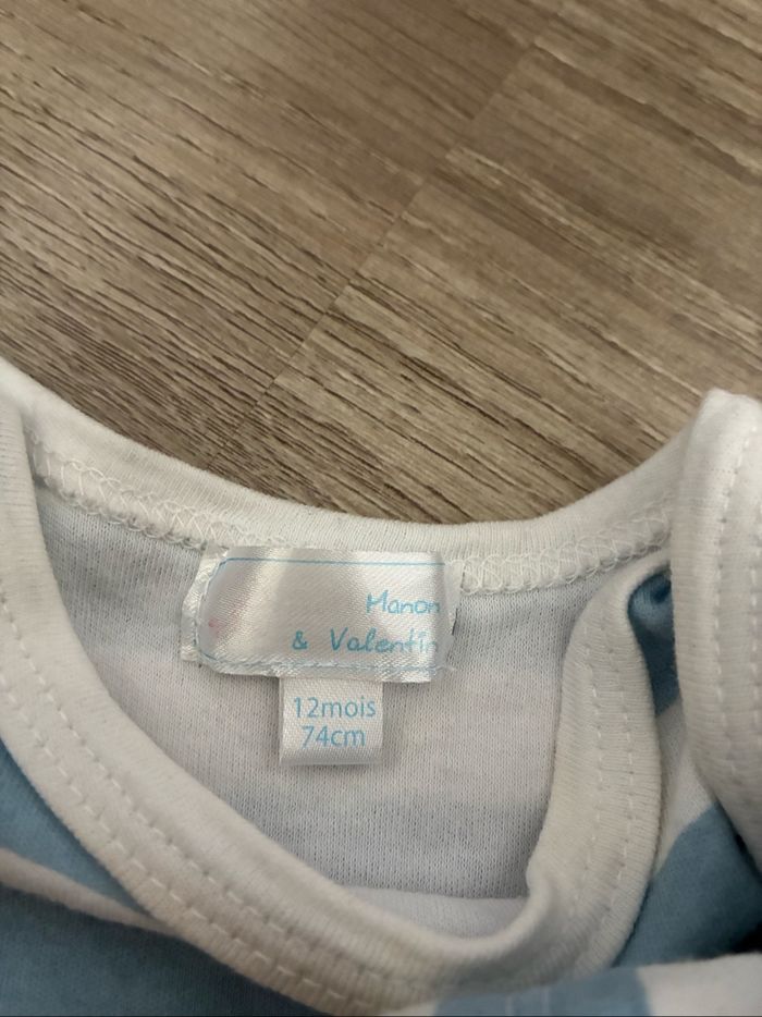 Bodie manches courtes. Le col est taché. Taille : 12 mois, 74 cm. Marque : Manon et Valentin.