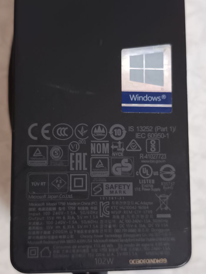 Chargeur original Microsoft Surface 1798 - 102W - 15V - 6.33A + câble d'alimentation - photo numéro 1