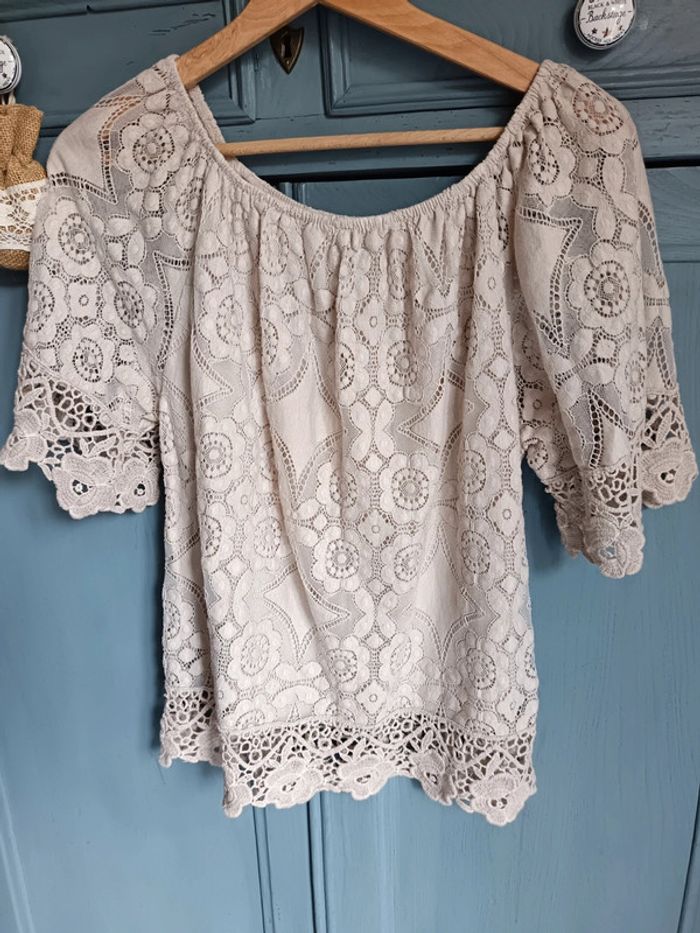 Haut dentelles beige magnifique Acheté dans une boutique indépendante Taille S/M