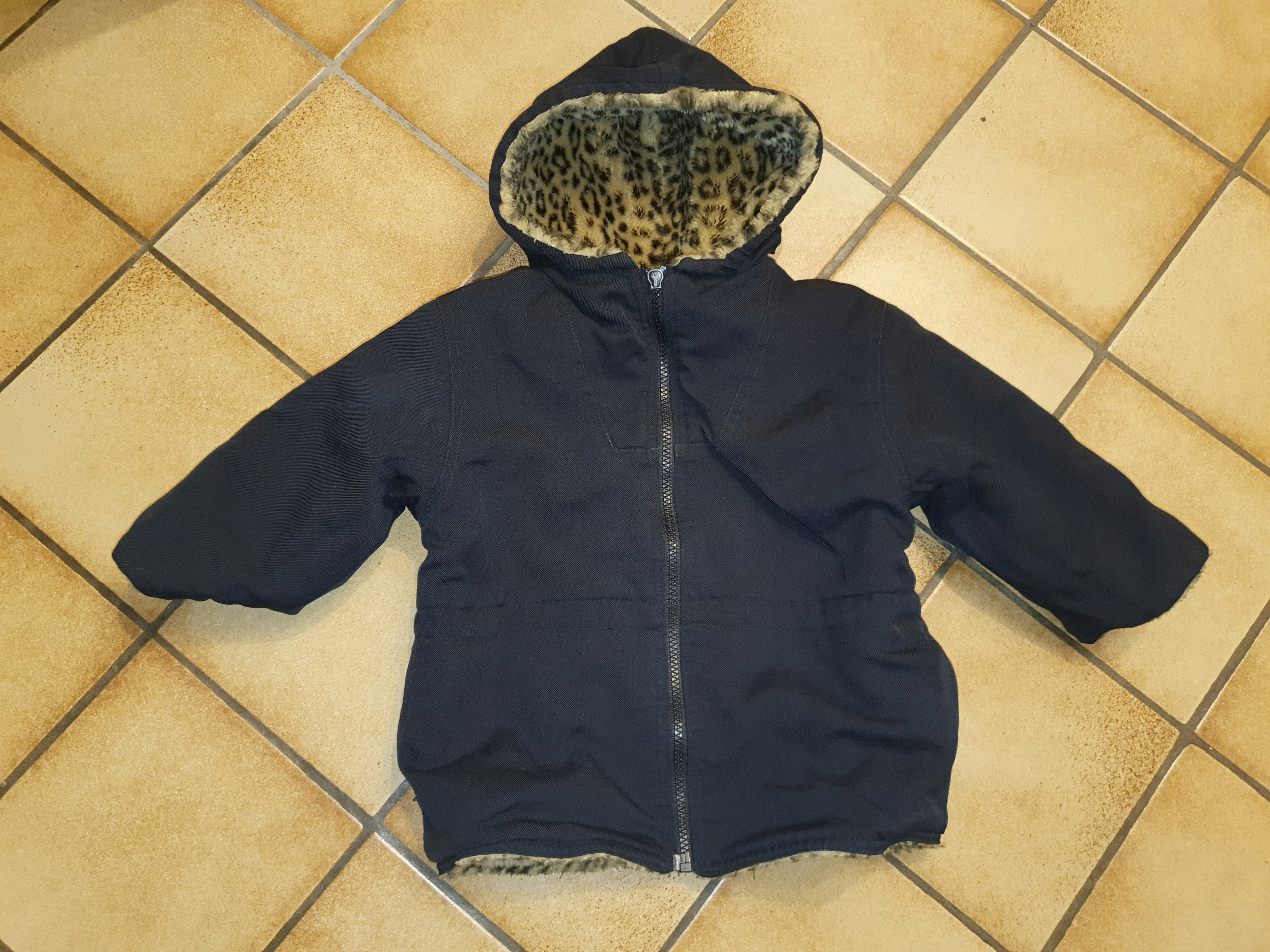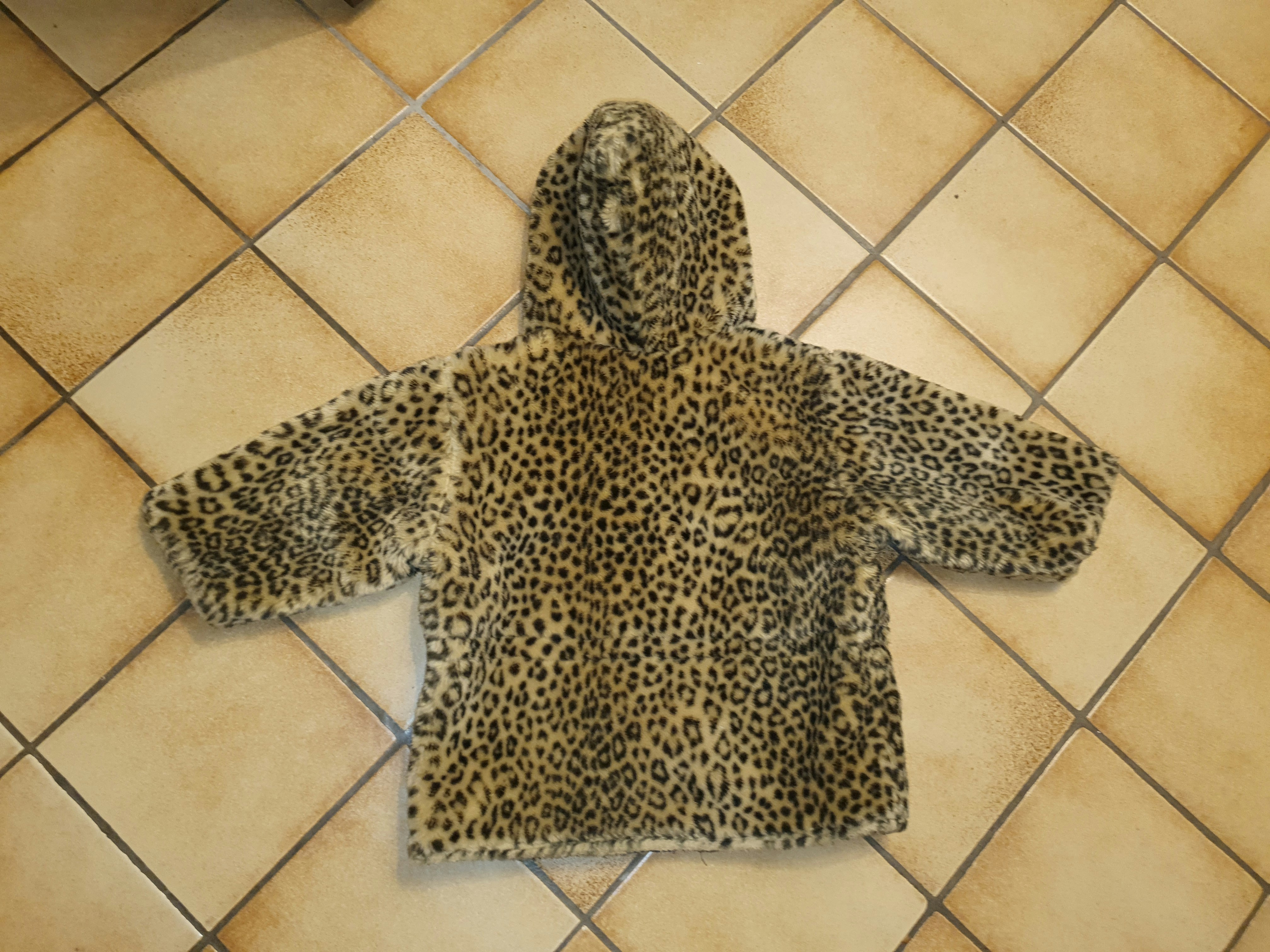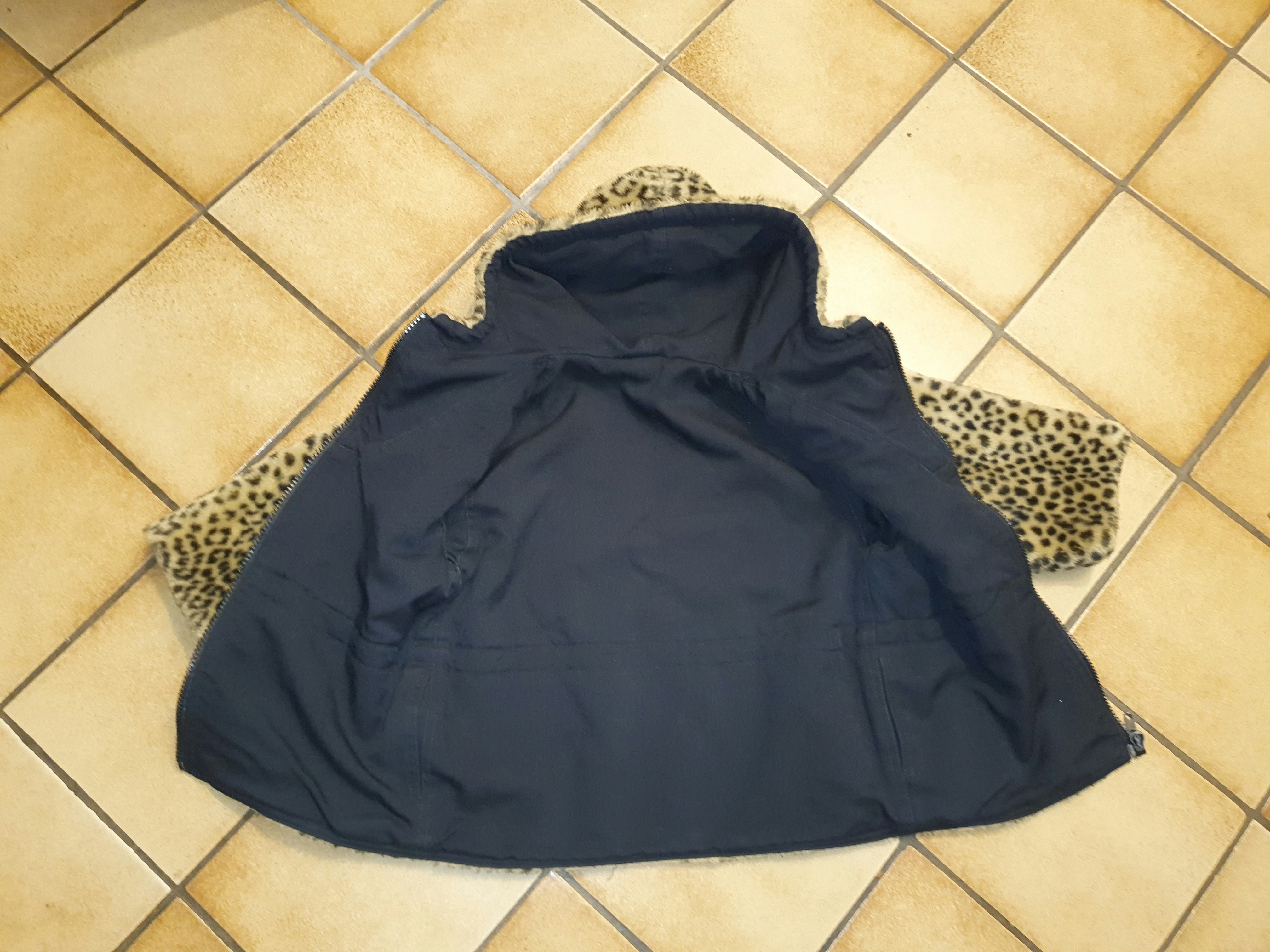 Veste réversible, peut-être porté des 2 Côté Côté fourrure léopard ? Côté coton, avec 2 poches, capuche très chaude