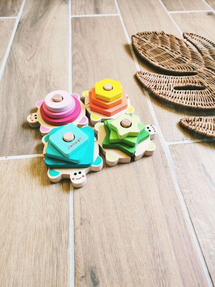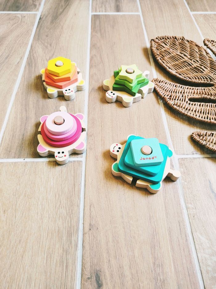 🐢Puzzle Tortues en bois 2 en 1 avec formes à empiler marque Janod