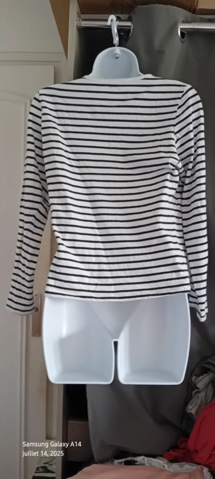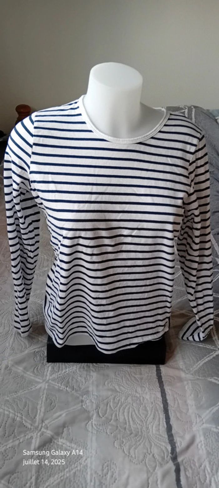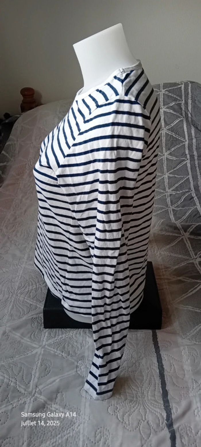Tee-shirt marinière manches longues marine et blanc femme M kiabi - photo numéro 13