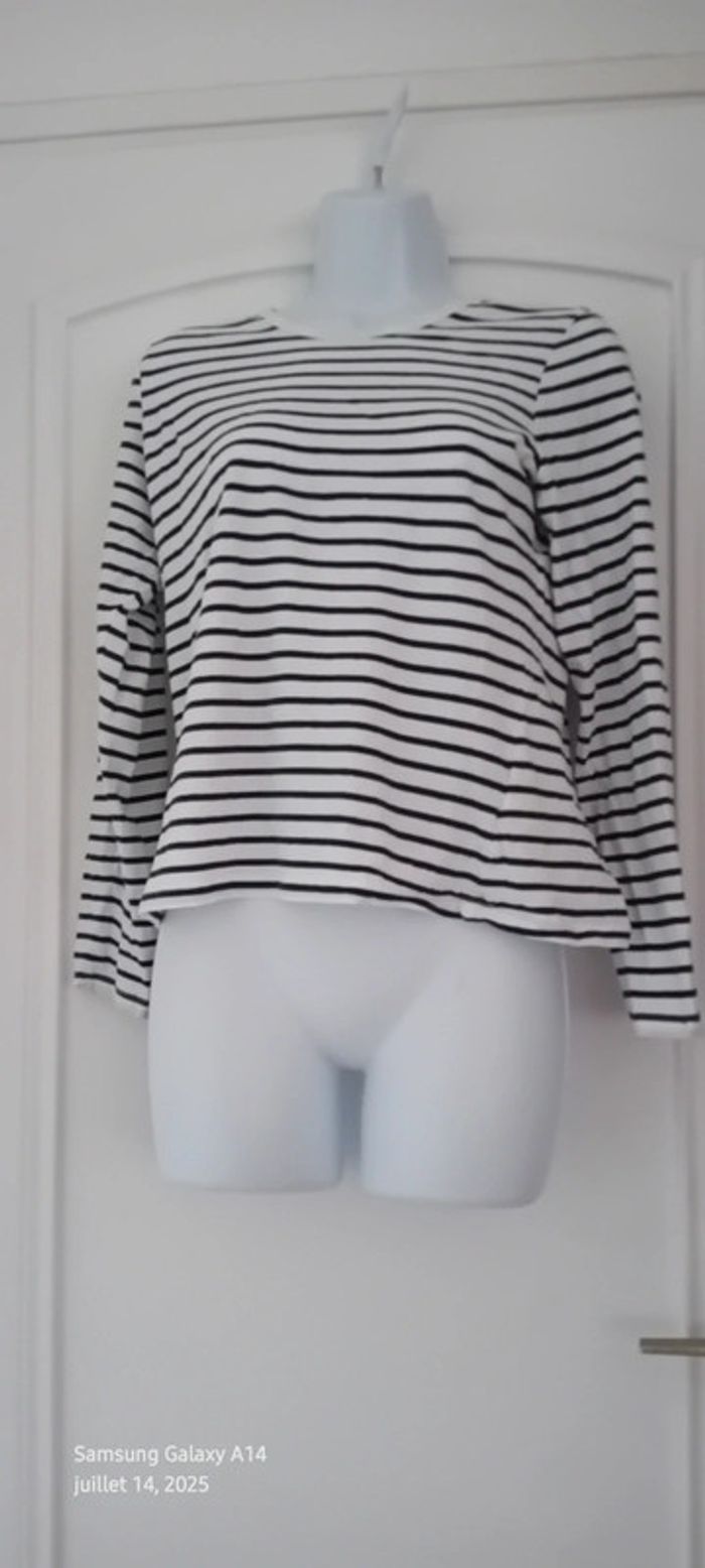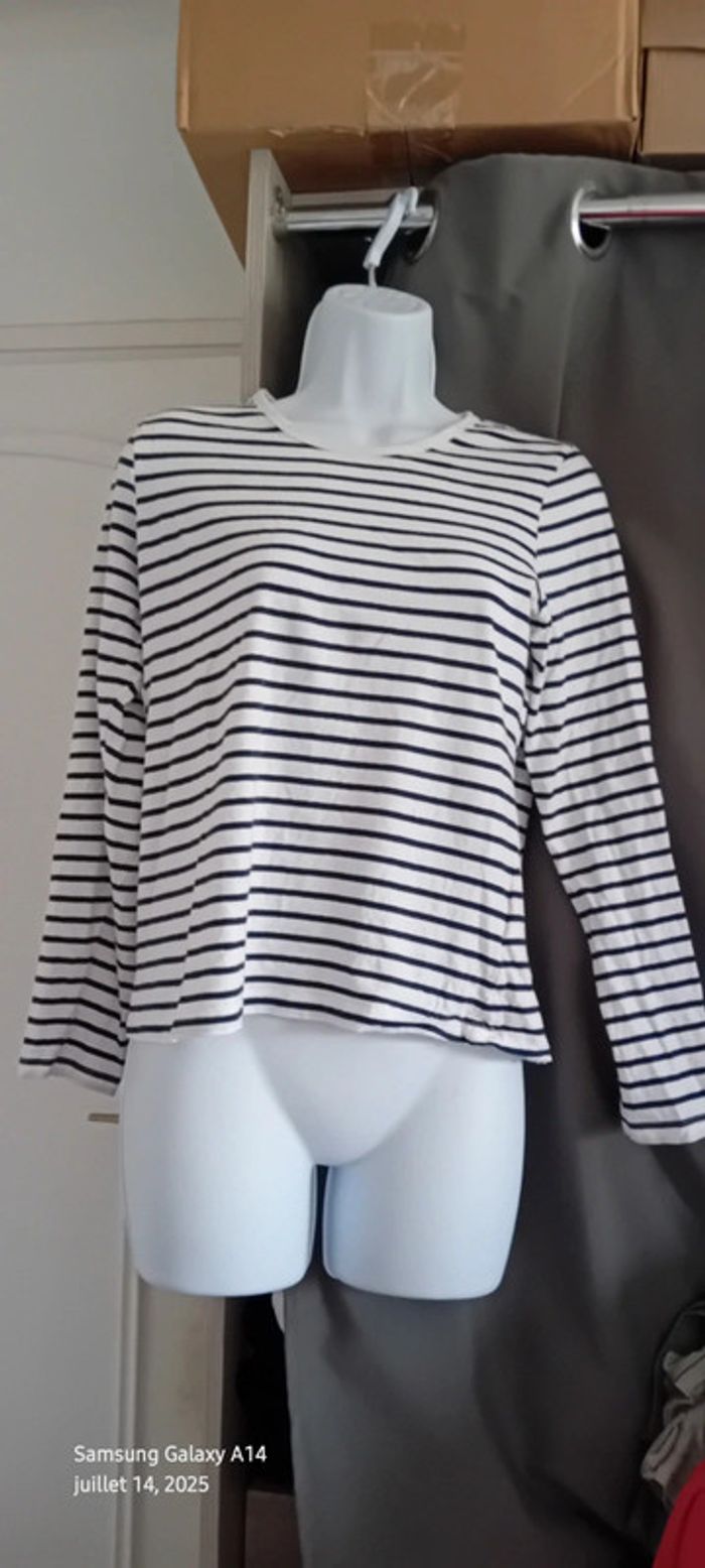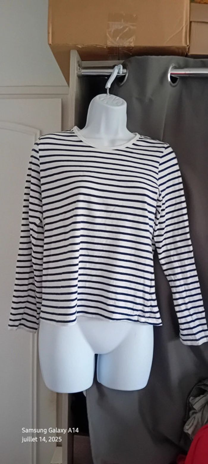 Tee-shirt marinière manches longues marine et blanc femme M kiabi - photo numéro 13