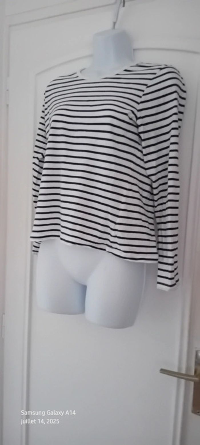 Tee-shirt marinière manches longues marine et blanc femme M kiabi - photo numéro 9