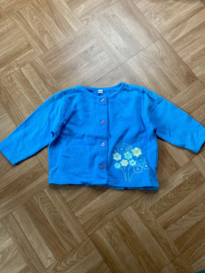 Gilet fin bleu motifs floraux taille 6 mois vintage - photo numéro 1