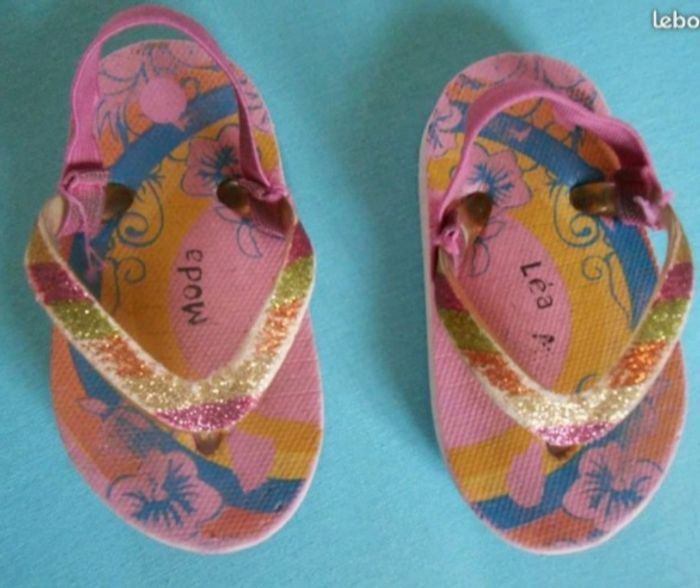 vends claquettes bébé fille taille 20 propres avec brillants sur le dessus 2 E