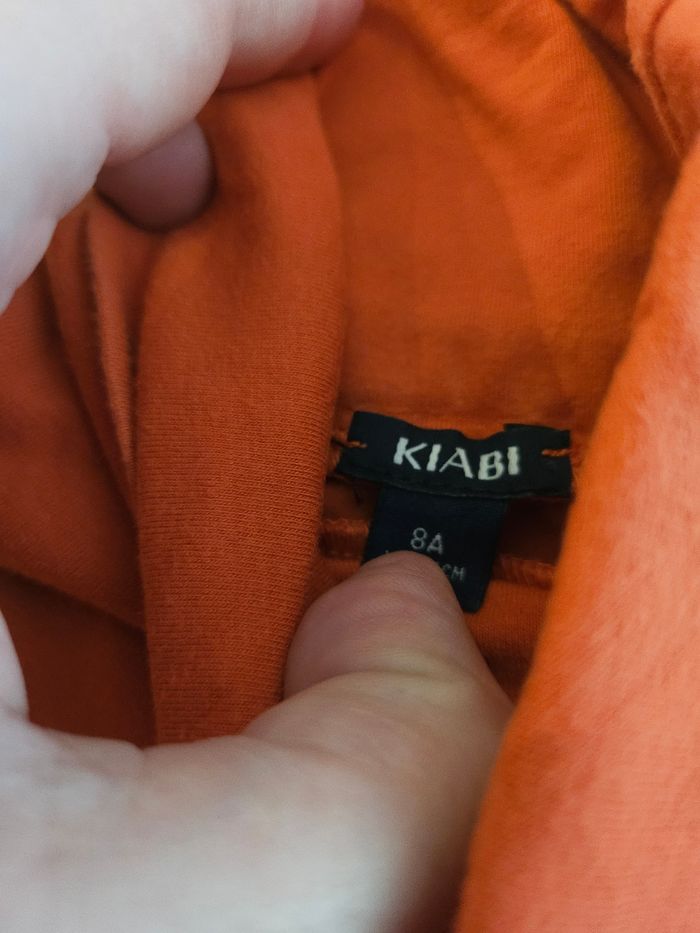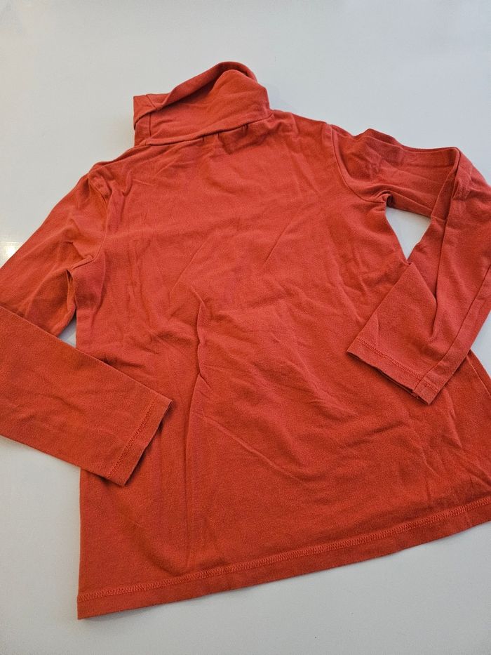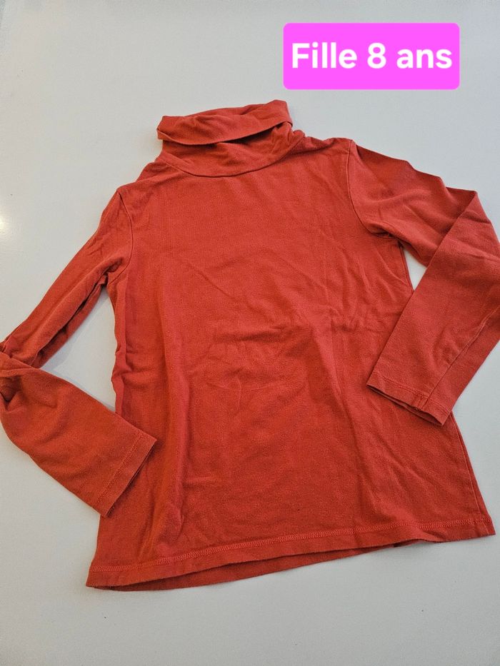 Sous pull col roulé, manches longues, orange. Marque : Kiabi Taille : 8 ans