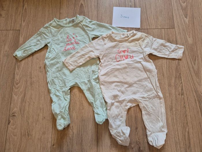 Lot de 2 pyjamas en coton, marque Orchestra. Taille 3 mois en très bon état