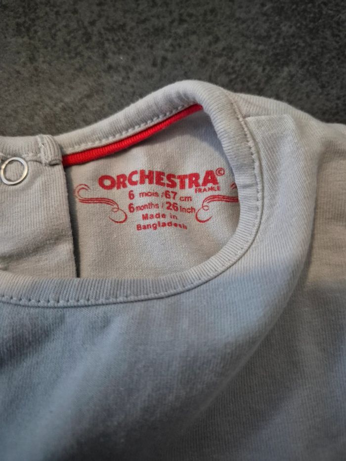Tee shirt en très bon etat. Taille 6 mois, marque Orchestra