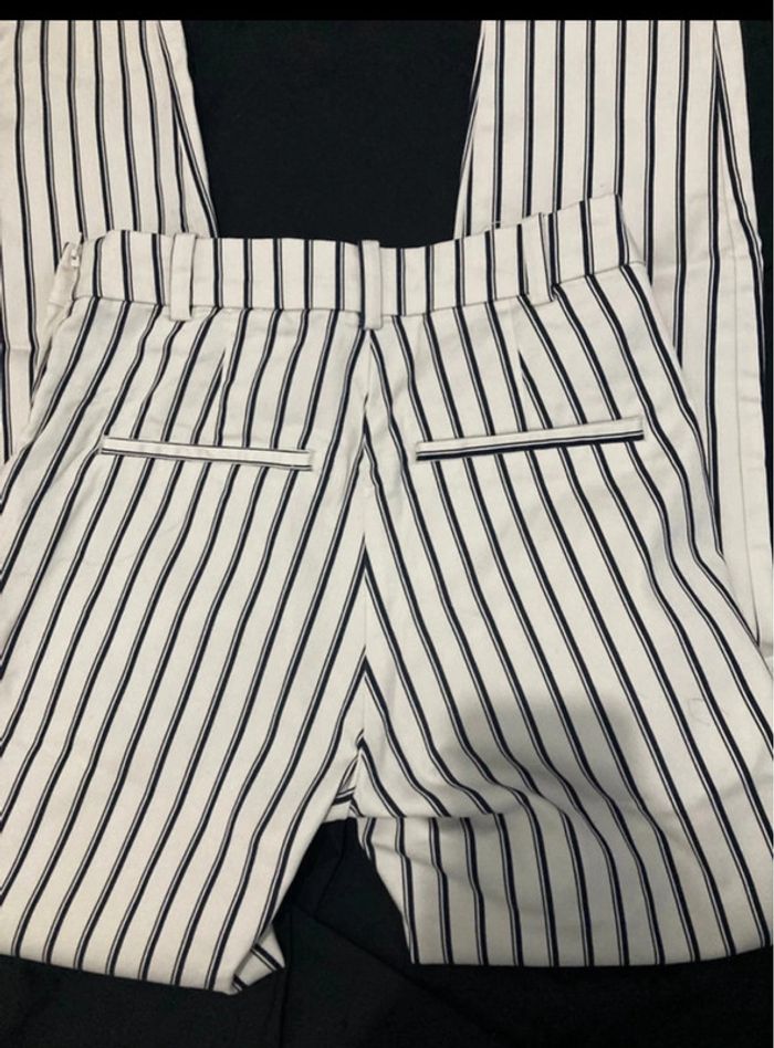 • Pantalon cigarette blanc à rayures bleu marine H&M • Taille 34 •Fermeture sur le côté • En parfait état ✔️