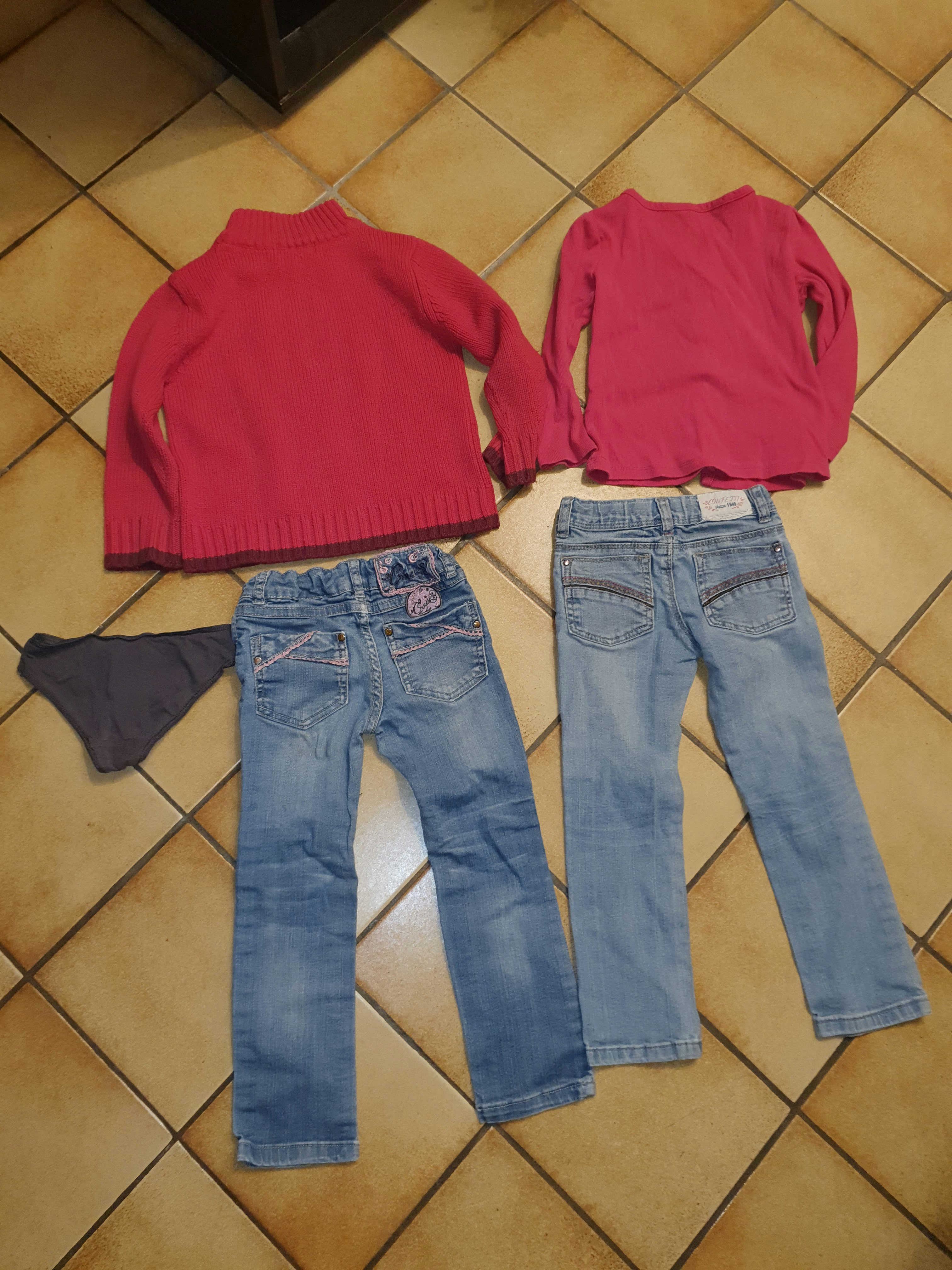 2 jeans, 1 pull, 1 Tee-shirt manches longues, 1 culotte