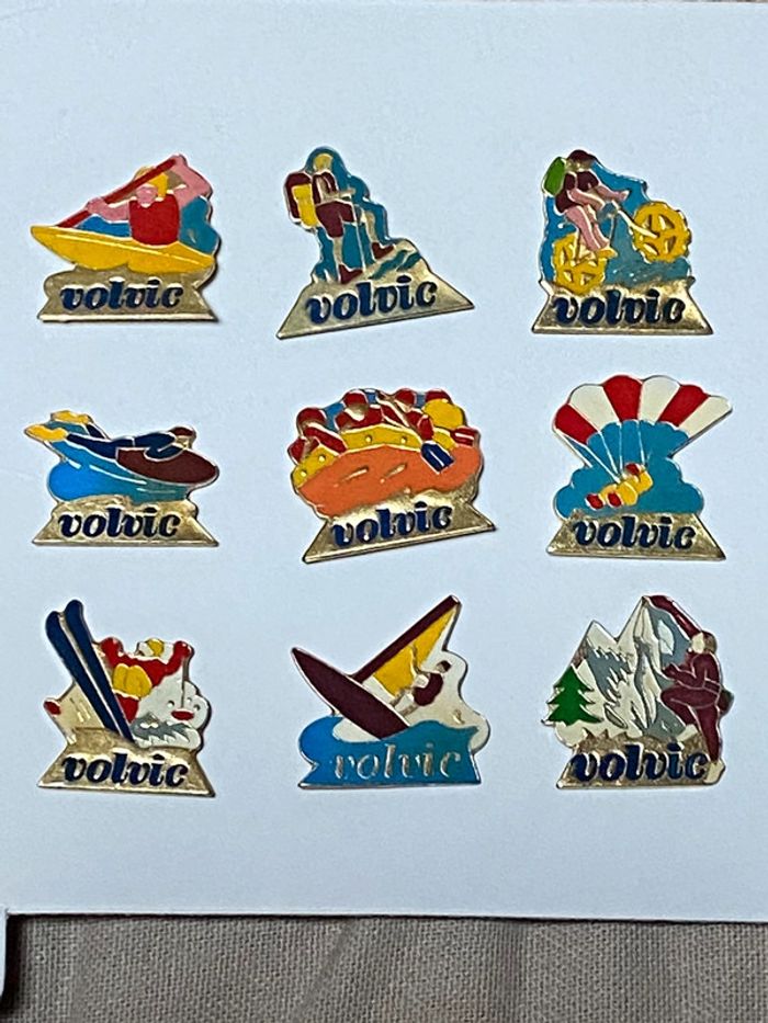 Lot de 9 pin’s Volvic avec leur attache