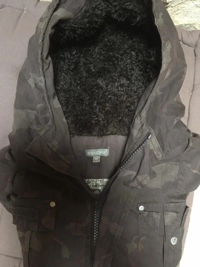 manteau avec capuche fourrée taille 10 ans petit accro sur fermeture éclair mais ferme très bien malgré tout #Iva32_Garçon_10ans