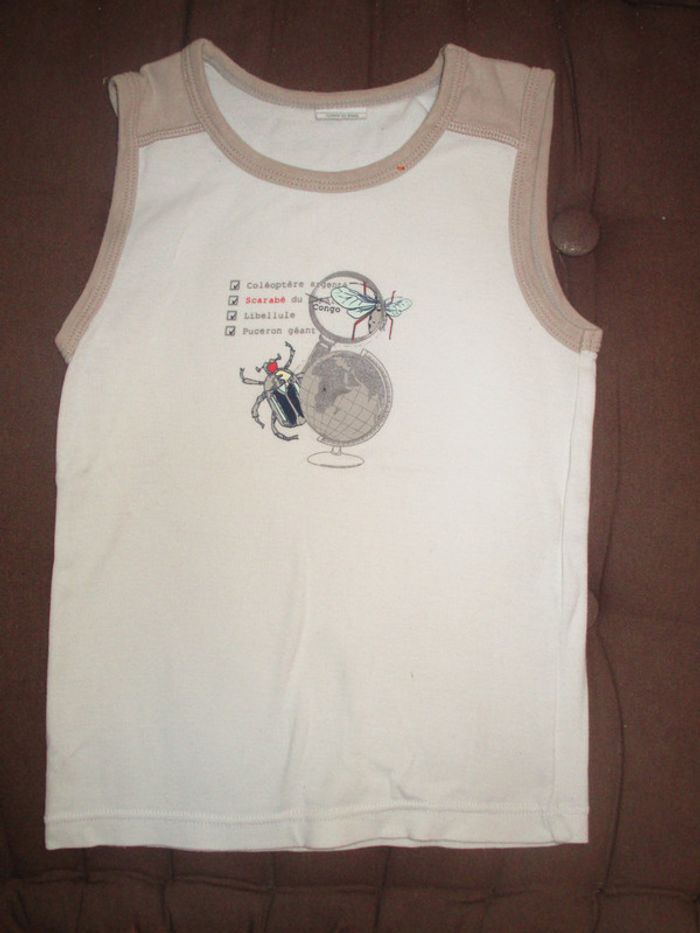 lot de 4 tee-shirt : - 1 tee-shirt blanc (la redoute) - 1 tee-shirt vert (petit bateau) - 1 débardeur - 1 tee-shirt à rayures, noté 5 ans mais taille petit, en 4 ans (orchestra) #Iva32_Vêtements
