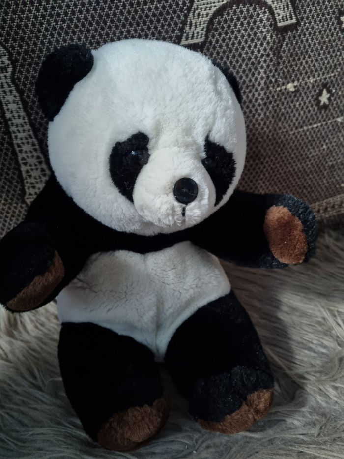 Peluche Panda doux,hauteur 30cm,couleur noir et blanc crème.