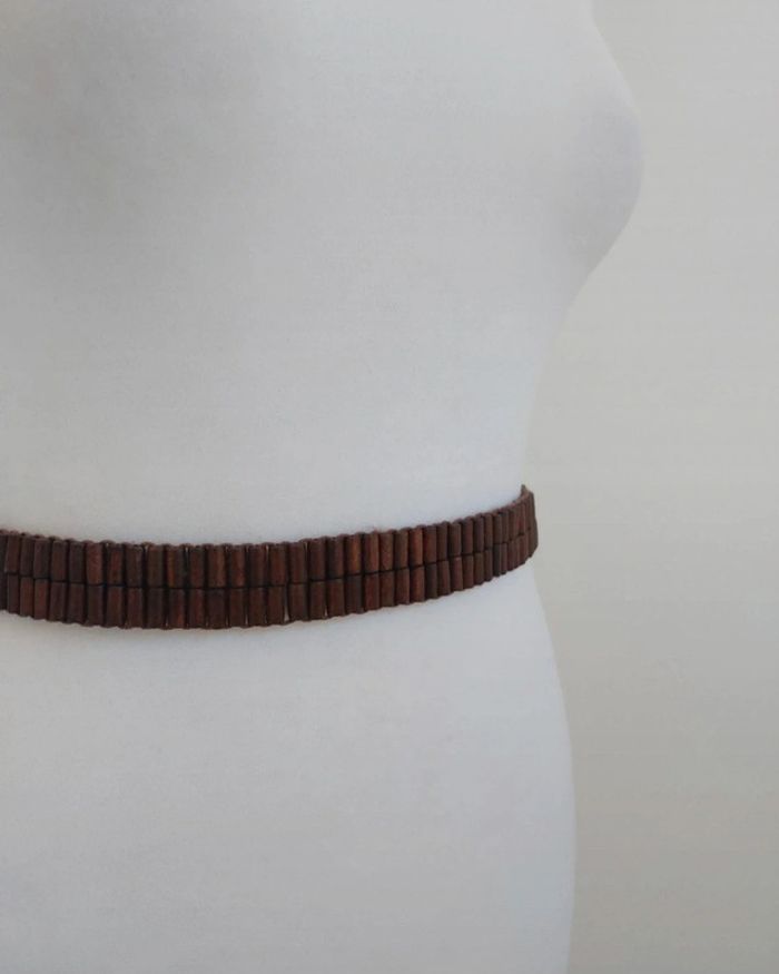 Ceinture perles en bois marron à nouer - photo numéro 4